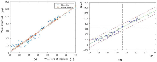 (a) The relationship between water area and water level in EDL. (b) The confidence intervals.