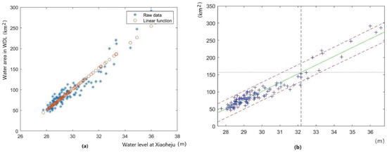 (a) The relationship between water area and water level in WDL. (b) The confidence intervals.