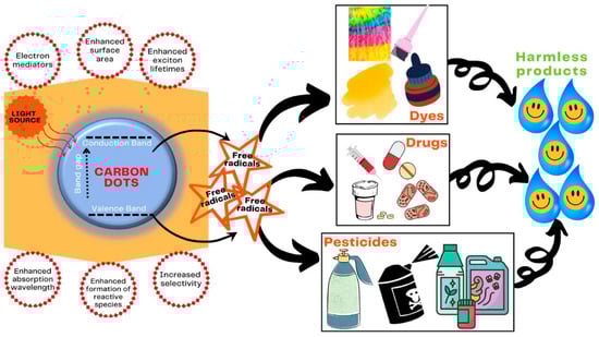 - Han, M.; Zhu, S.; Lu, S.; Song, Y.; Feng, T.; Tao, S.; Liu, J.; Yang, B. Recent progress on the photocatalysis of carbon dots: Classification, mechanism and applications. Nano Today 2018, 19, 201–218. [Google Scholar] [CrossRef]