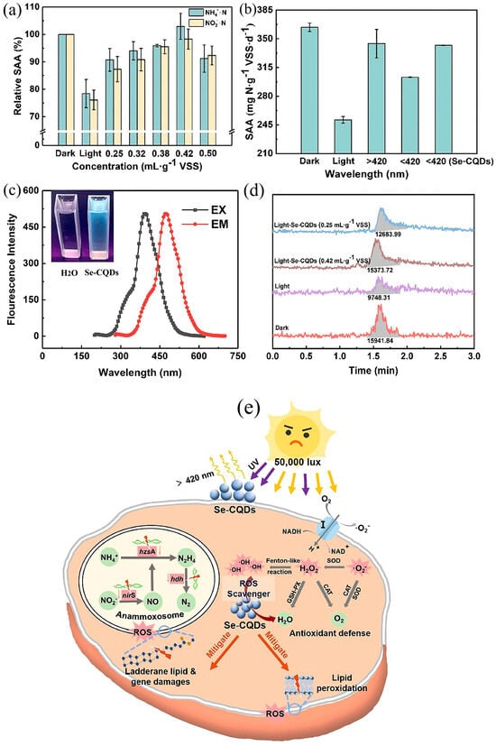 - Ren, Z.; Yu, L.; Wang, H.; Li, G.; Zhang, L.; Du, X.; Huang, B.; Jin, R. Inorganic quantum dots-anammox consortia hybrid for stable nitrogen elimination under high-intensity solar-simulated irradiation. Water Res. 2022, 223, 119033. [Google Scholar] [CrossRef] [PubMed]