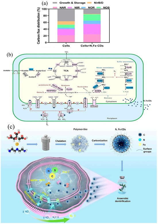 - Li, Q.; Lu, H.; Tian, T.; Fu, Z.; Dai, Y.; Li, P.; Zhou, J. Insights into the Acceleration Mechanism of Intracellular N and Fe Co-doped Carbon Dots on Anaerobic Denitrification Using Proteomics and Metabolomics Techniques. Environ. Sci. Technol. 2024, 58, 2393–2403. [Google Scholar] [CrossRef] [PubMed]