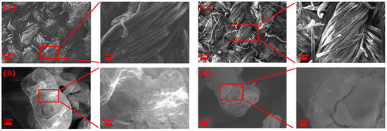 It is clear that the DACF membrane exhibited fiber fracture, which was probably due to the DP reduction and the chains broken by periodate oxidation, and this led to the decrease in the corresponding mechanical properties of the DACF membrane. The fiber diameter of the DACF membrane was 15.2 ± 1.9 μm, which did not change significantly, as shown in Figure 7A,C. Meanwhile, it could be seen that the surface of the original cellulose fabric was relatively smooth and flat, which became remarkably rough with visible cracks in the cross-sectional view of the oxidized fiber. This could be explained by the partial conversion of hydroxyl groups to aldehyde groups in cellulose, which destroyed the original hydrogen bonds and damaged the structure of cellulose chains, thus leading to the formation of cracks [45].