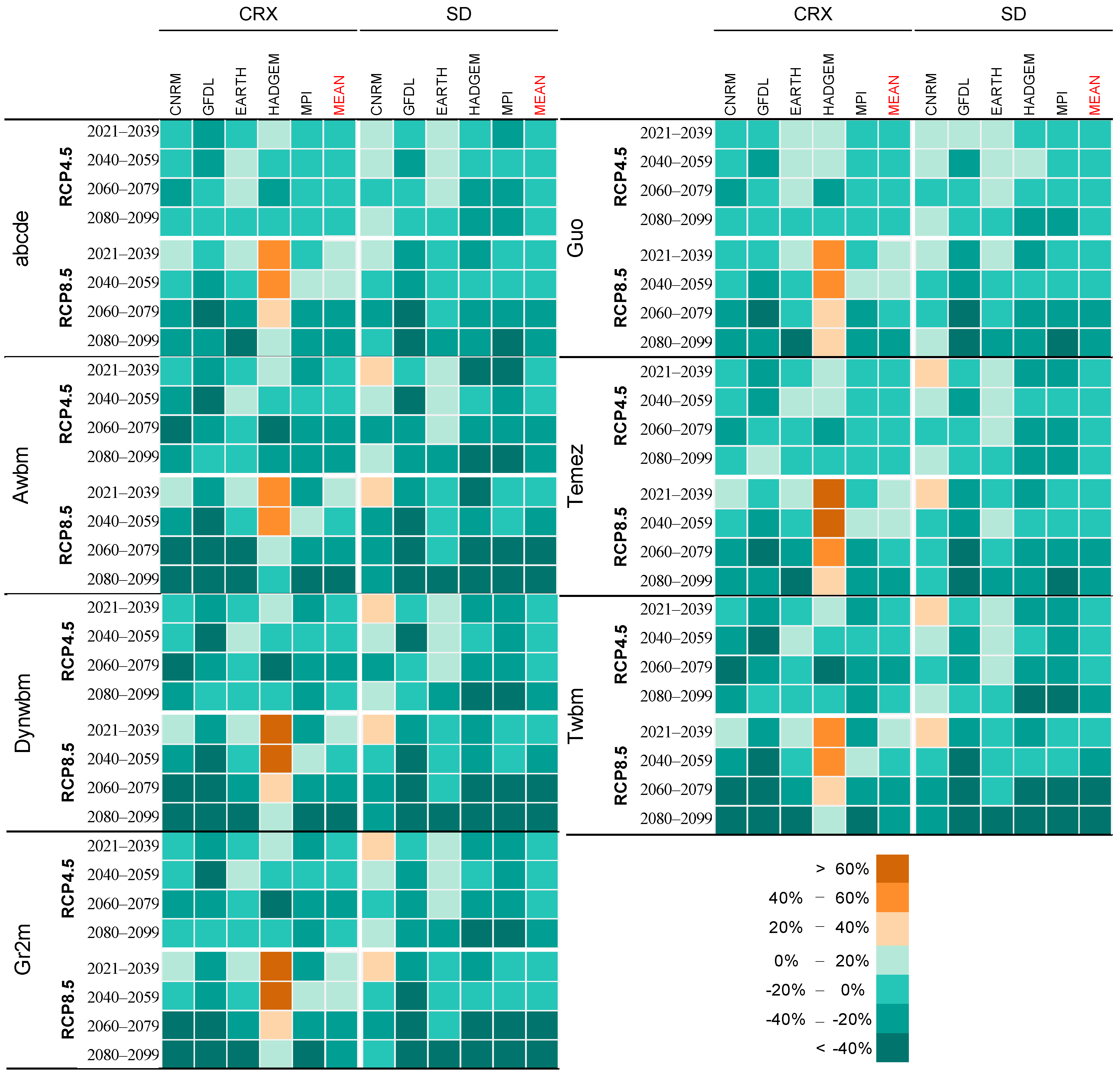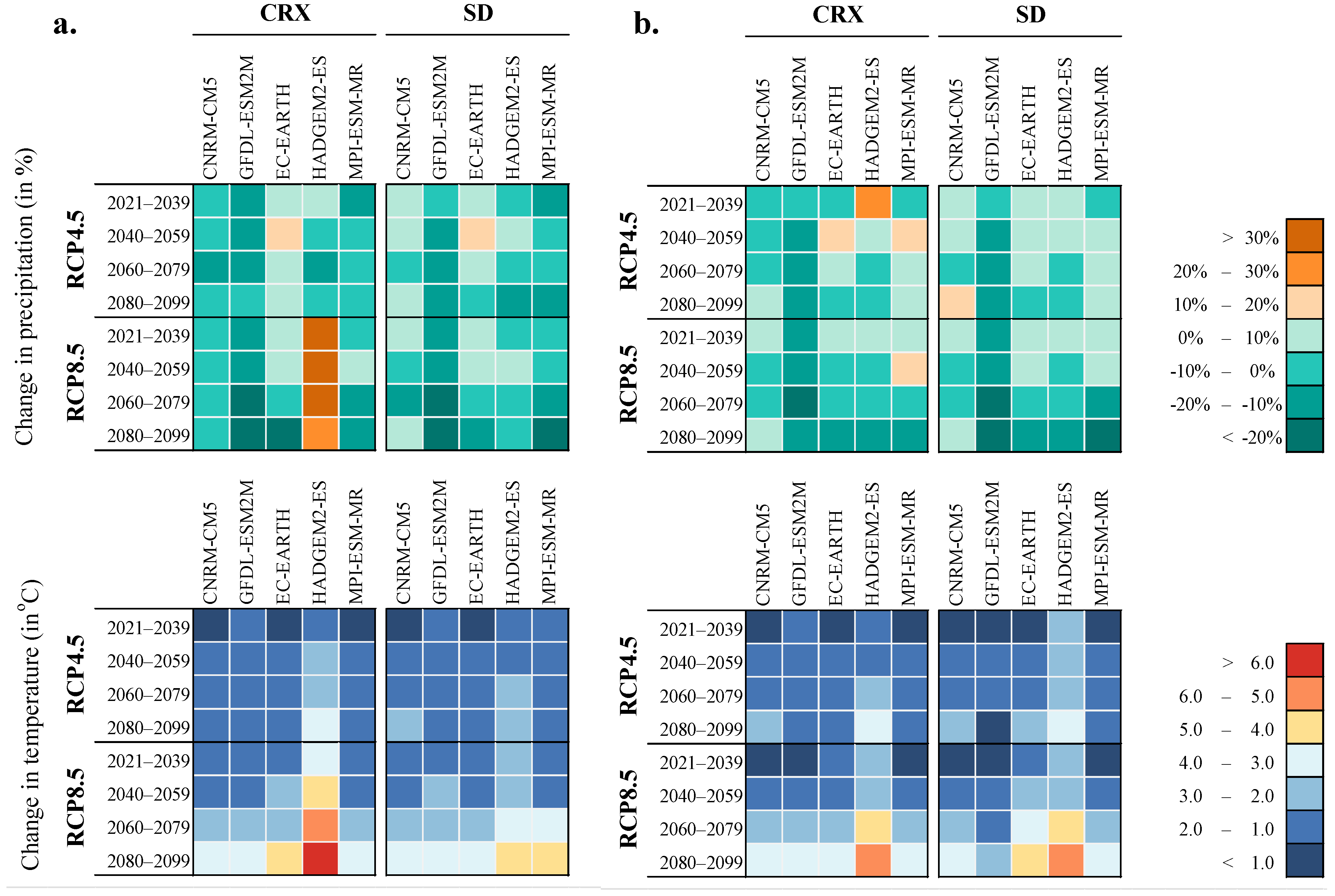 CNRM-CM5 | 1.4° × 1.4° | RCA4 | 0.44° × 0.44° | CNRM-CRX | CNRM-SD |
