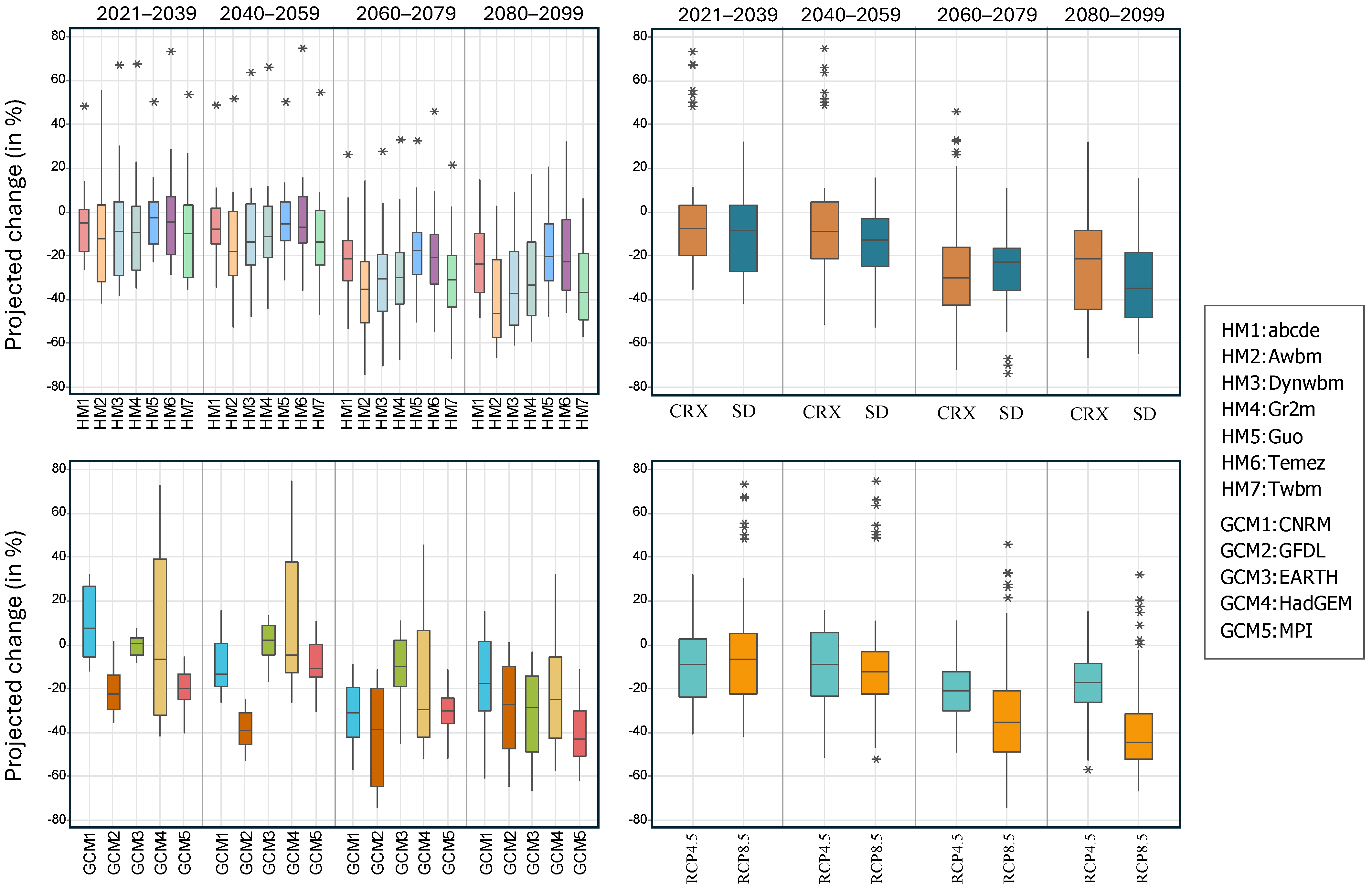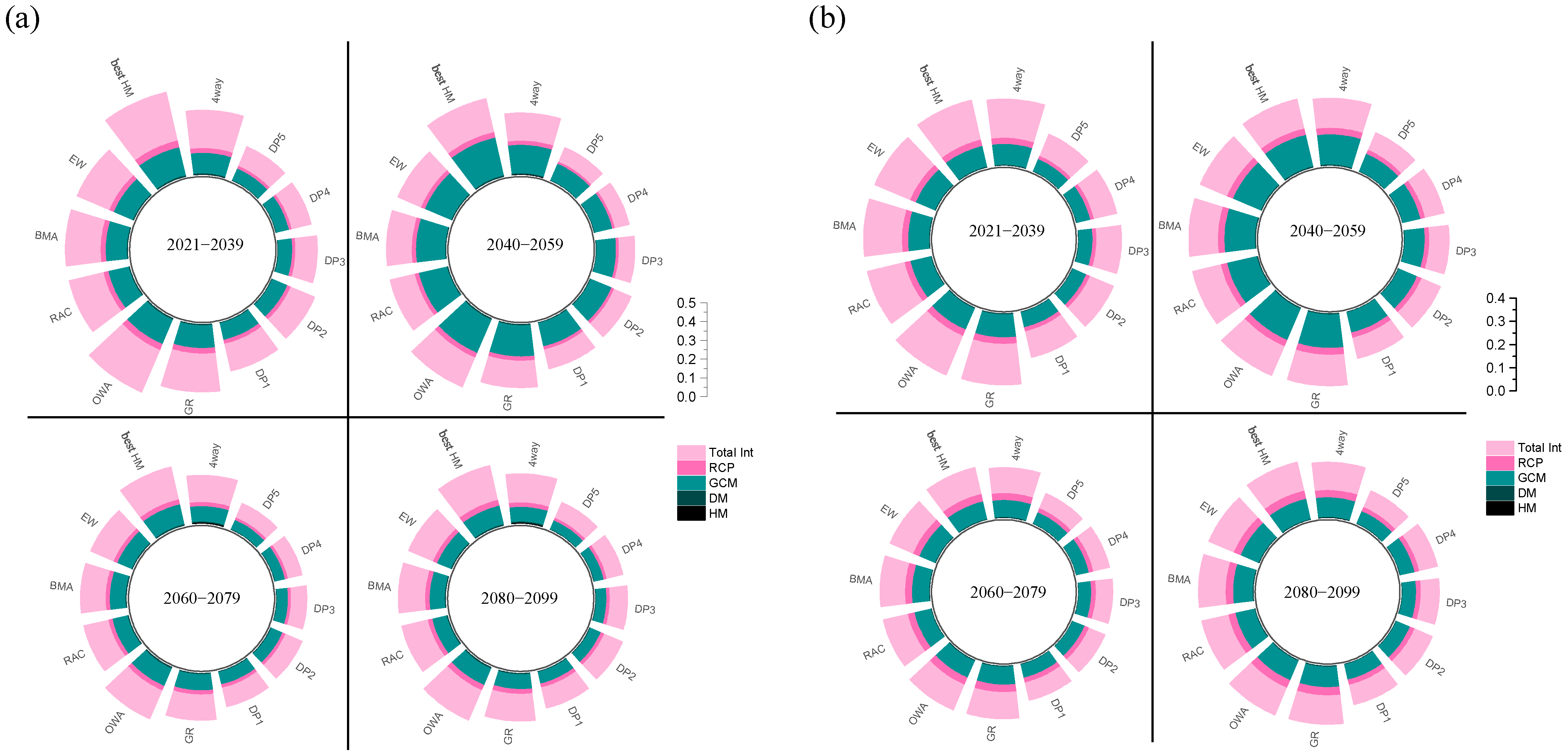 4.2.2. Partitioning Uncertainty in Runoff Projections: Four-Way ANOVA