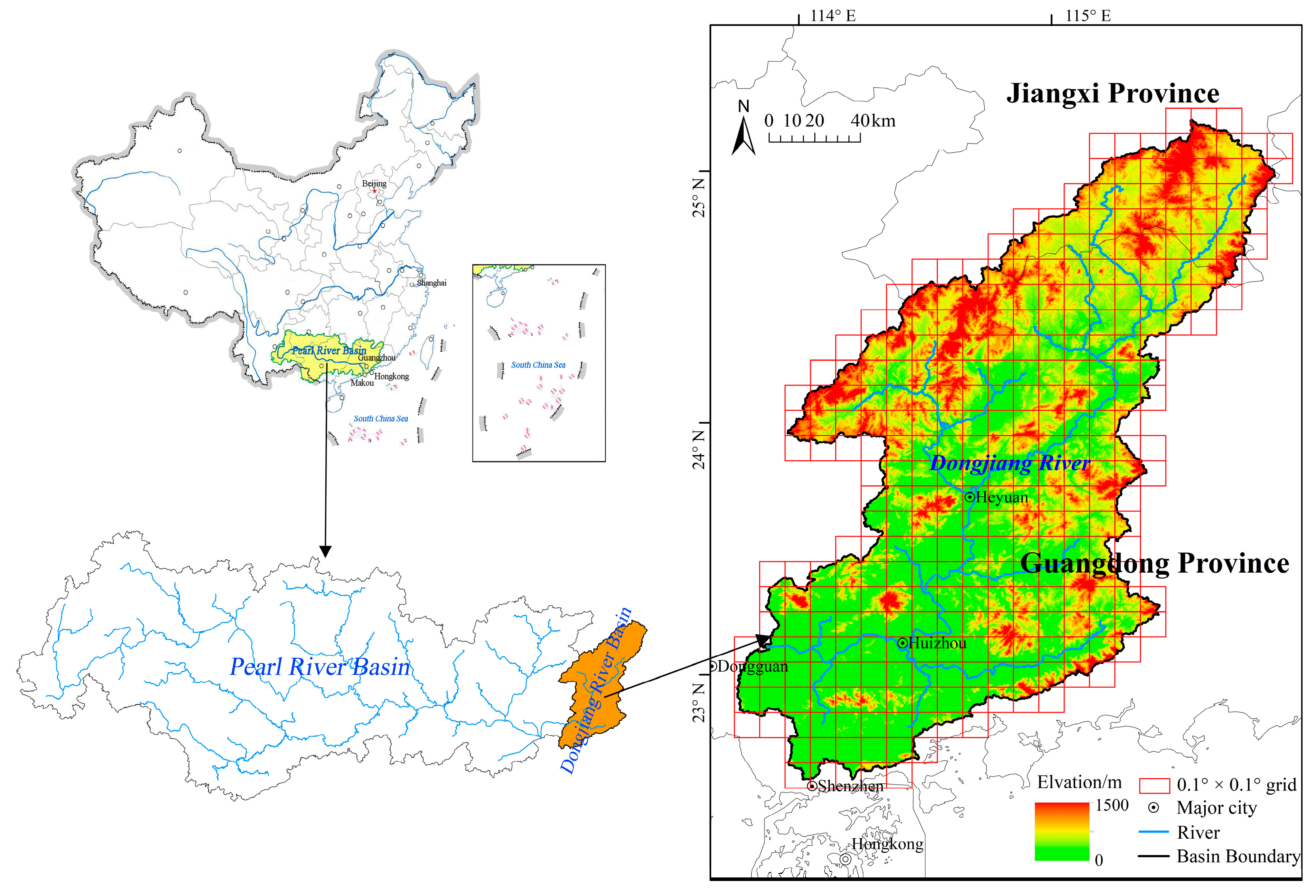 The Dongjiang River Basin, a major sub-basin of the Pearl River Basin—the largest river system in southeatern China—covers a total area of 35,340 km