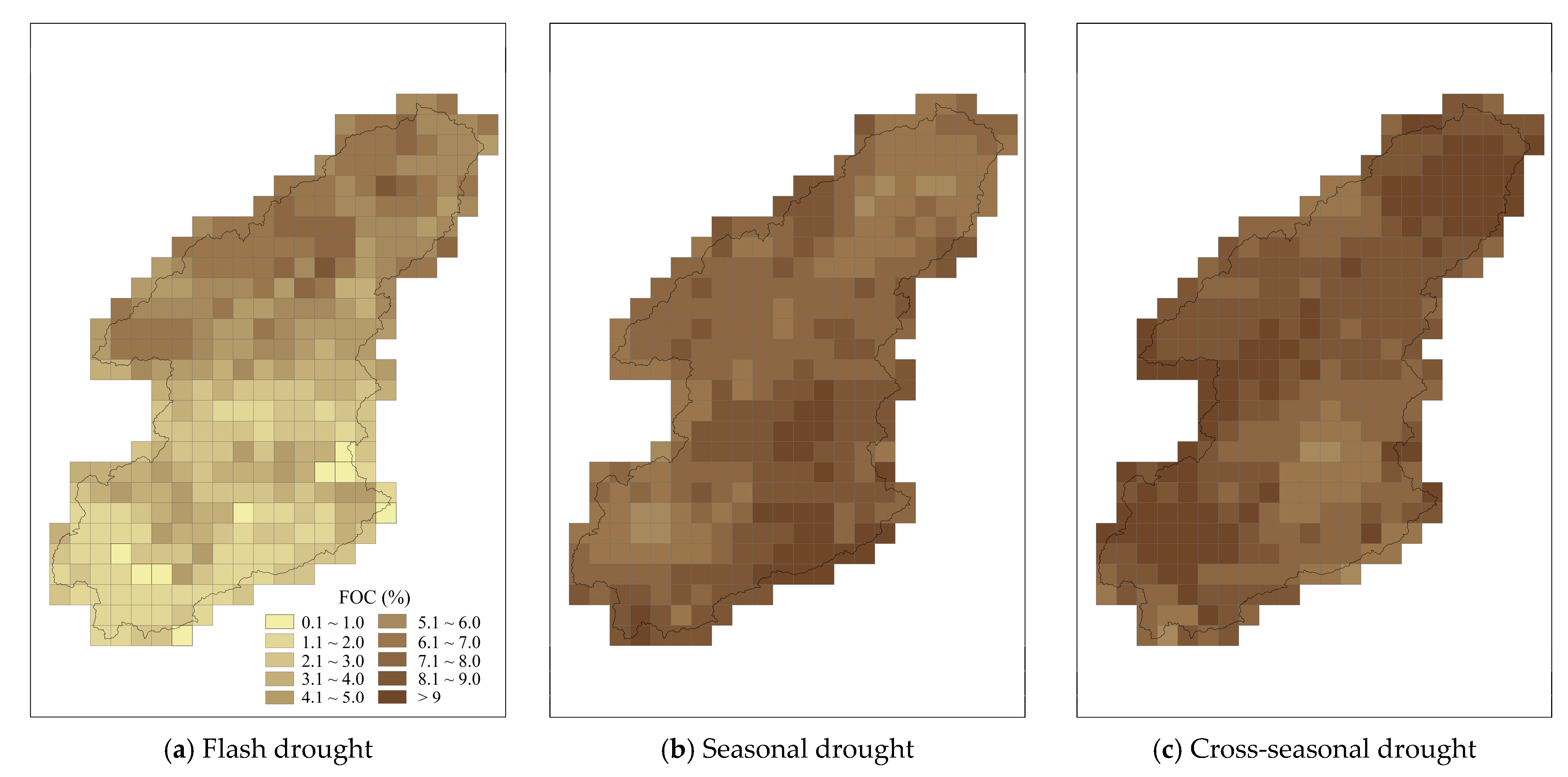 28]. Studies have shown that flash droughts exhibit a spatially heterogeneous distribution across China, with higher frequency in both northern and southern regions [