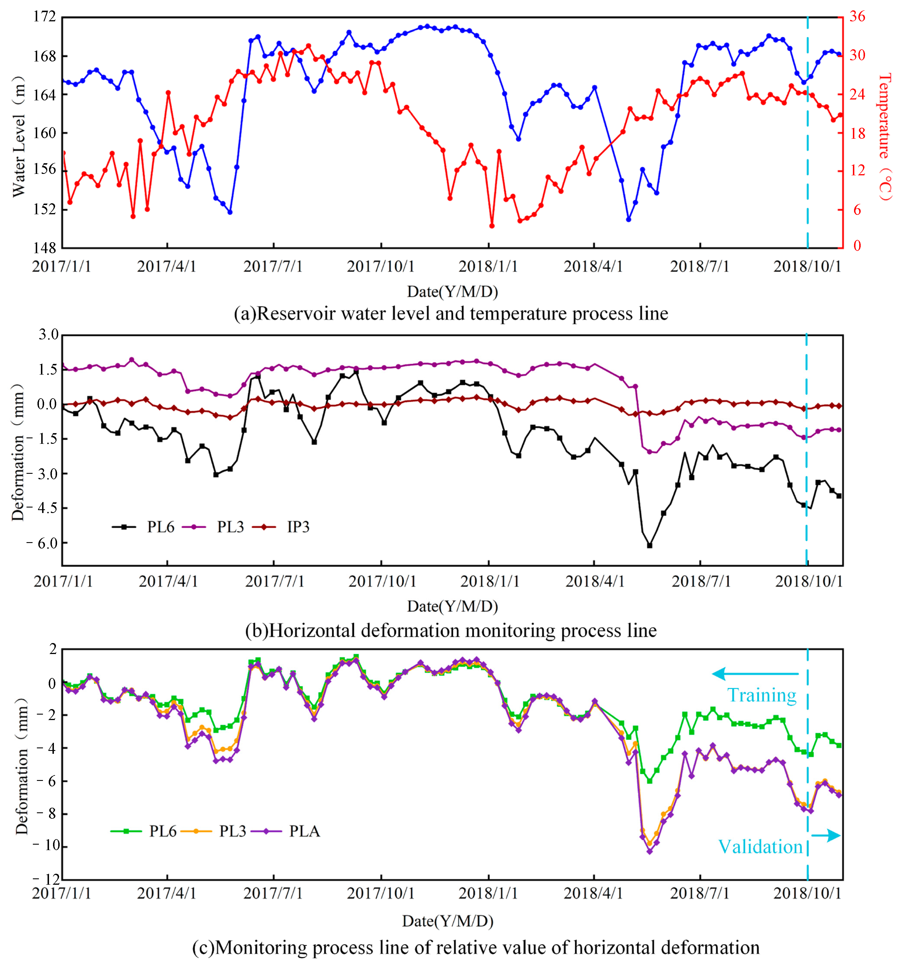 - Li, S.P.; Zhang, B.; Liu, Z.Q. A new prediction model of dam deformation and successful application. Buildings 2025, 15, 818. [Google Scholar] [CrossRef]