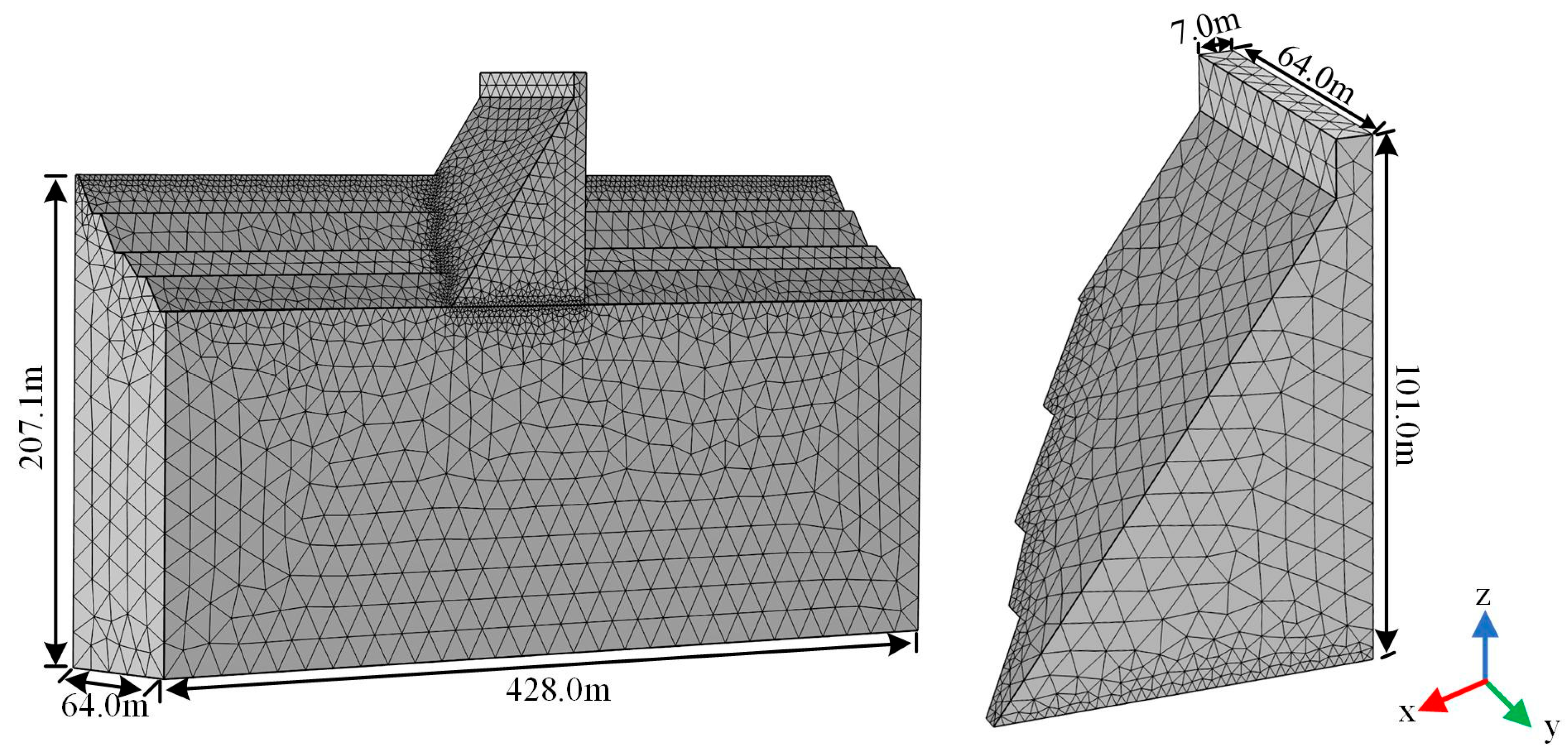 4.1. Numerical Simulation Model of Concrete Gravity Dam