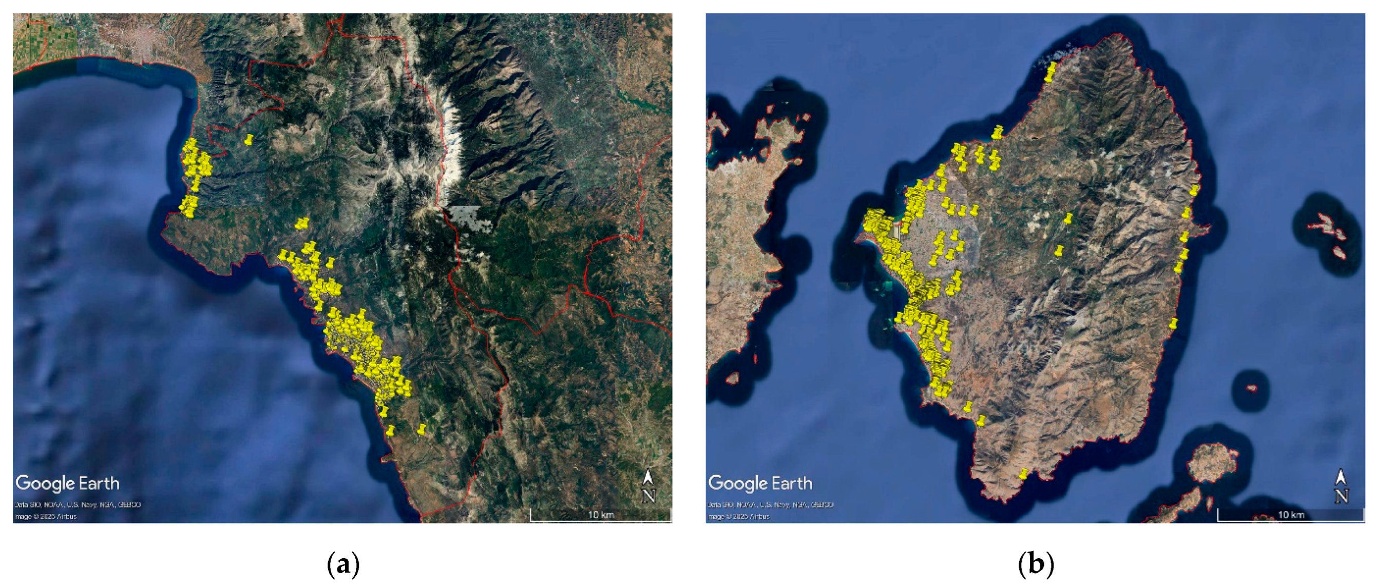 - Tronos News. New Record of Tourist Arrivals in Naxos—Strategic Actions for Further Development. Available online: https://www.tornosnews.gr/en/greek-news/economy/51340-new-record-of-tourist-arrivals-in-naxos-%E2%80%93-strategic-actions-for-further-development.html (accessed on 7 October 2025).