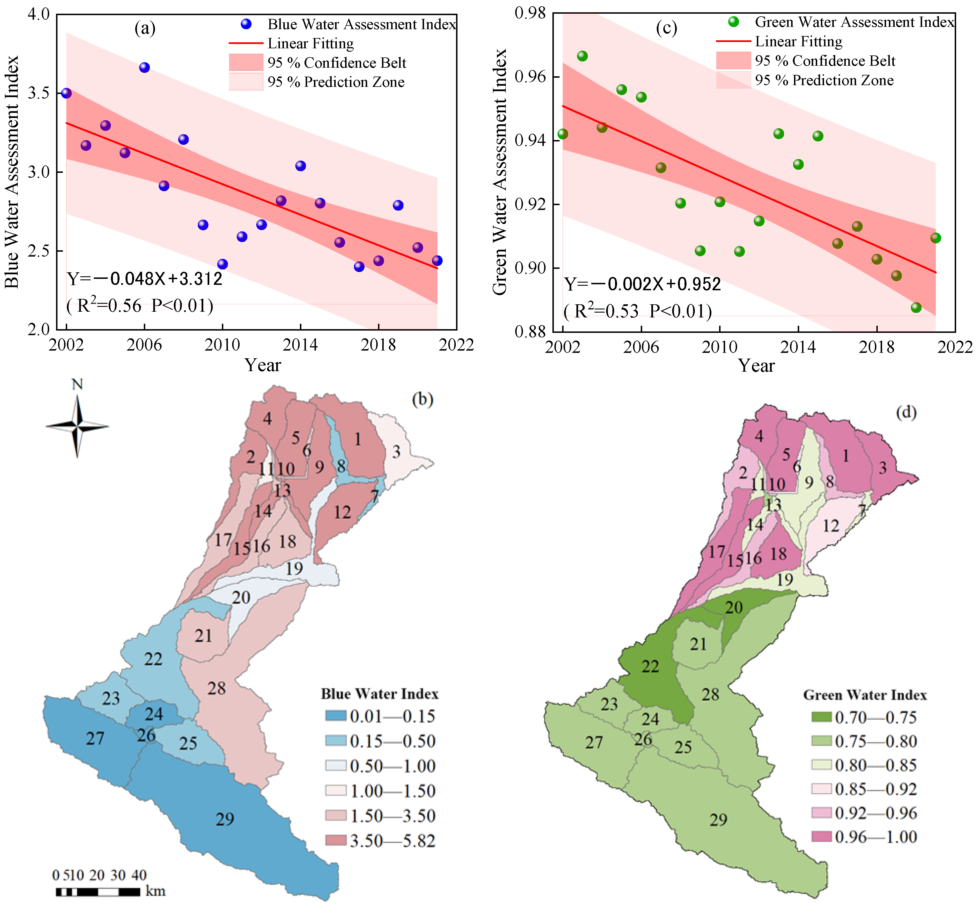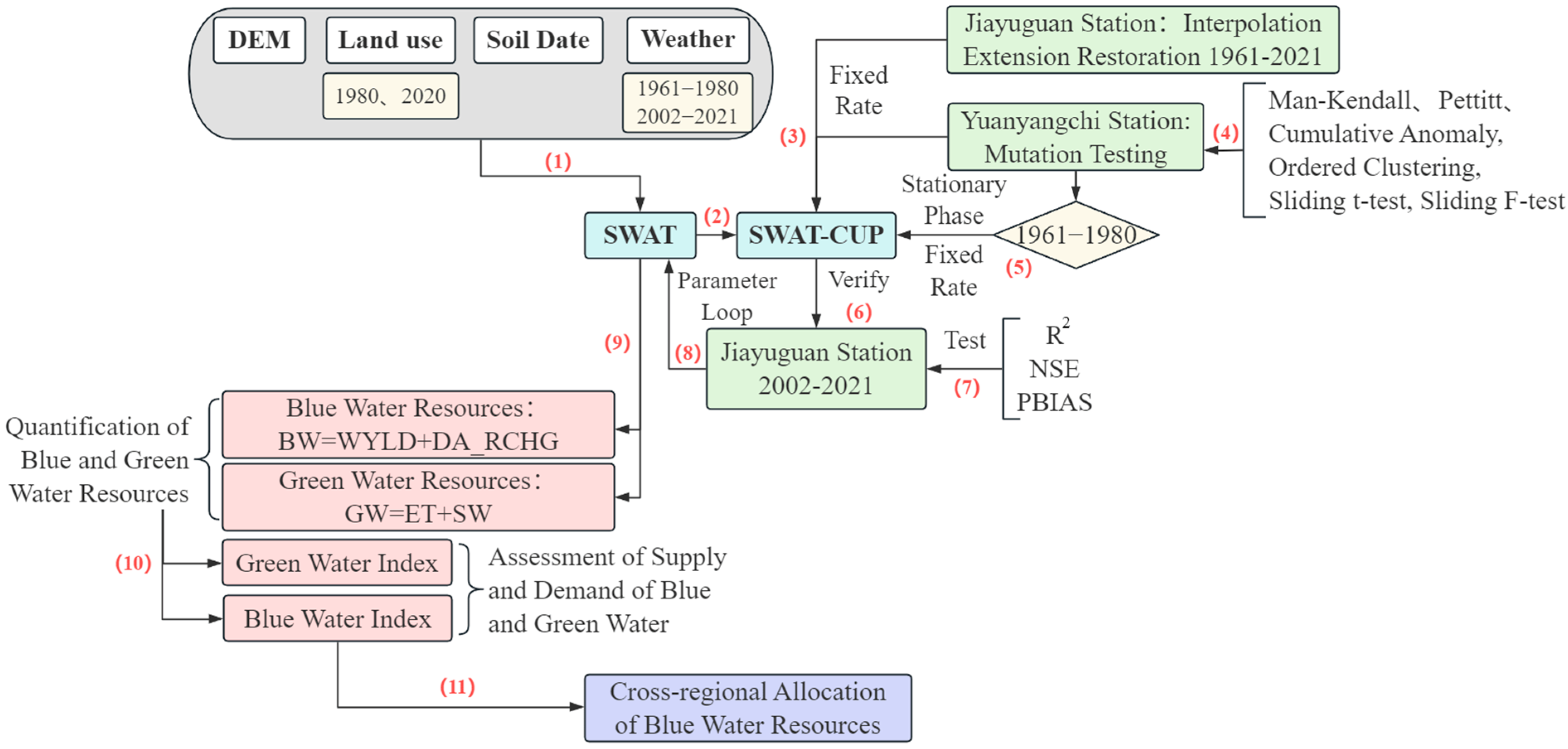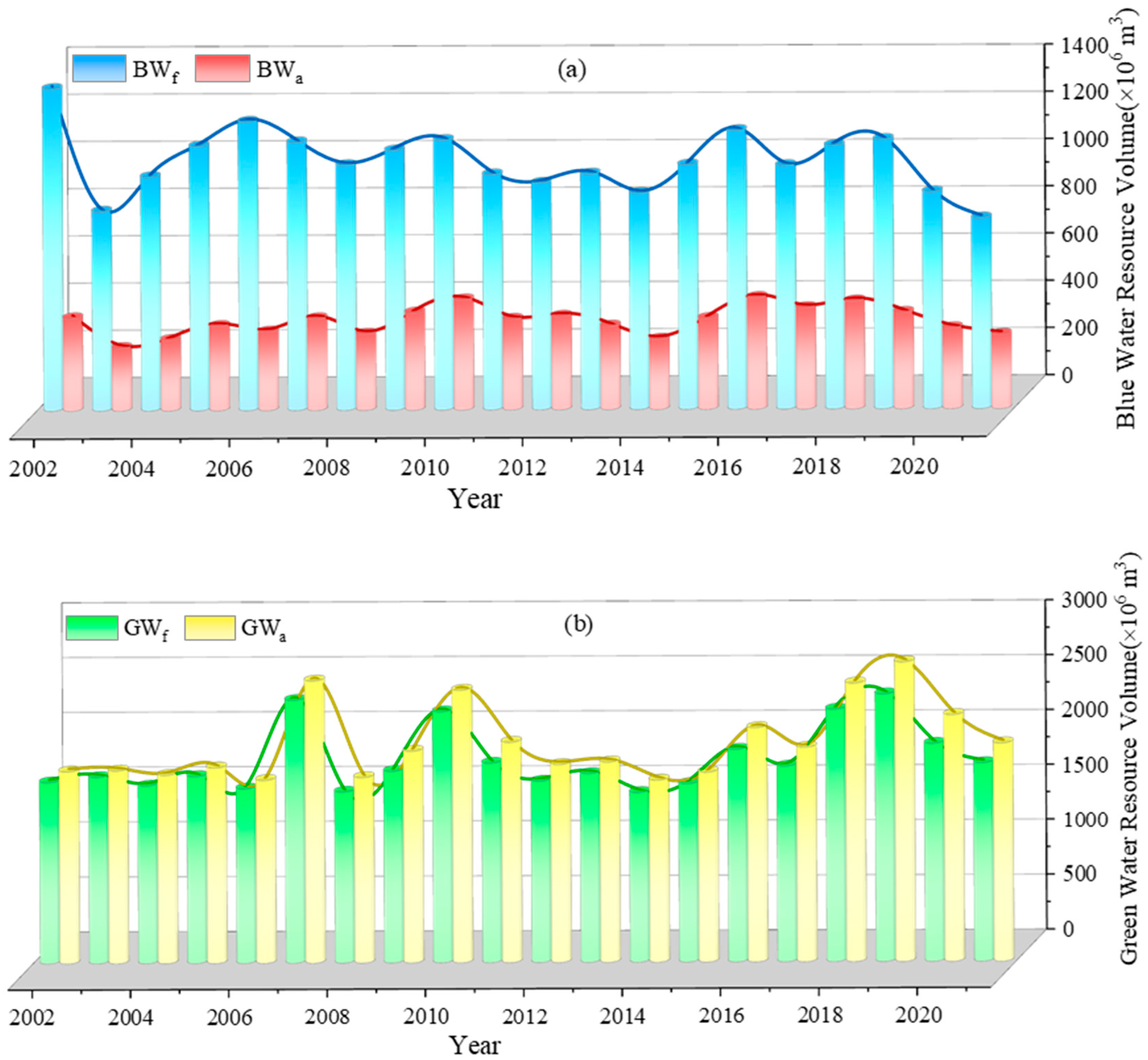 2.7. Quantification and Evaluation of Blue–Green Water Resources