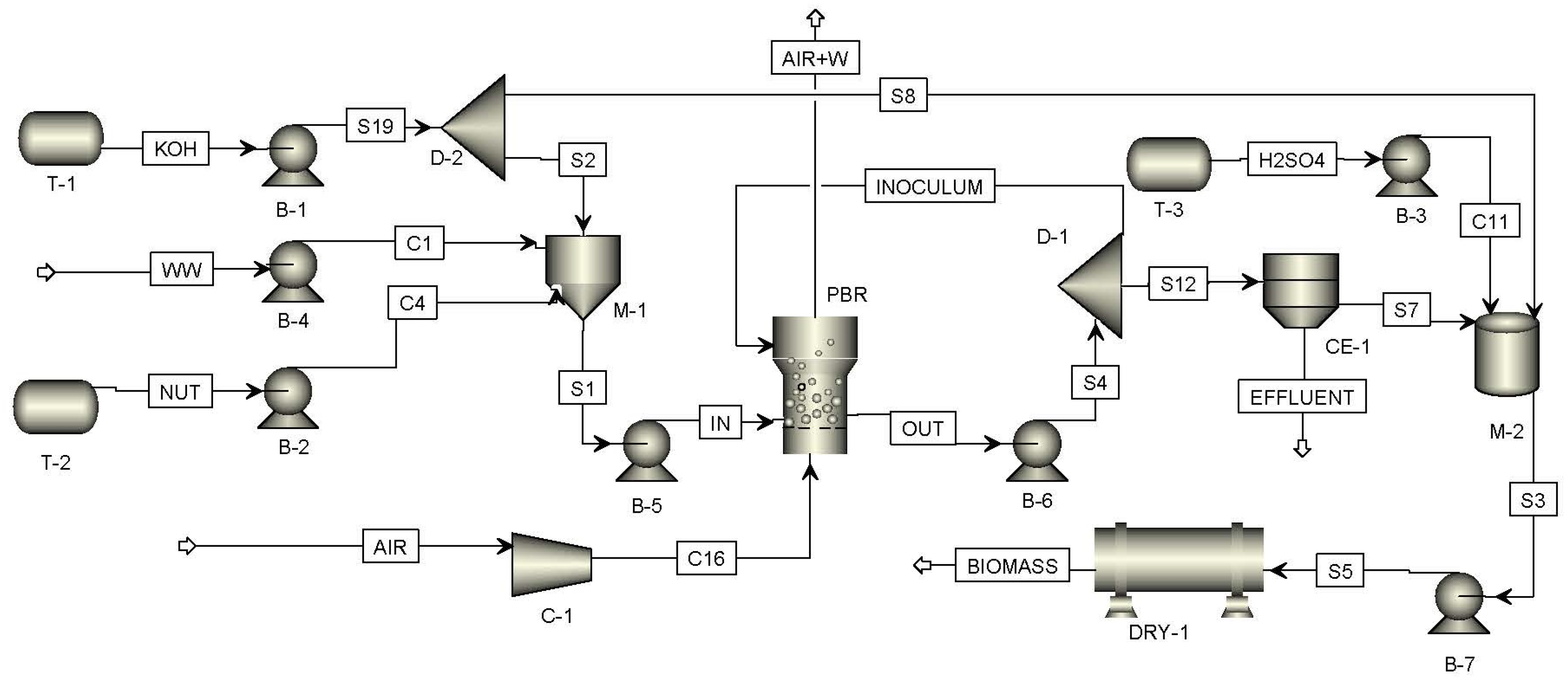 - Satiro, J.; Gomes, A.; Florencio, L.; Simões, R.; Albuquerque, A. Effect of microalgae and bacteria inoculation on the startup of bioreactors for paper pulp wastewater and biofuel production. J. Environ. Manag. 2024, 362, 121305. [Google Scholar] [CrossRef]
