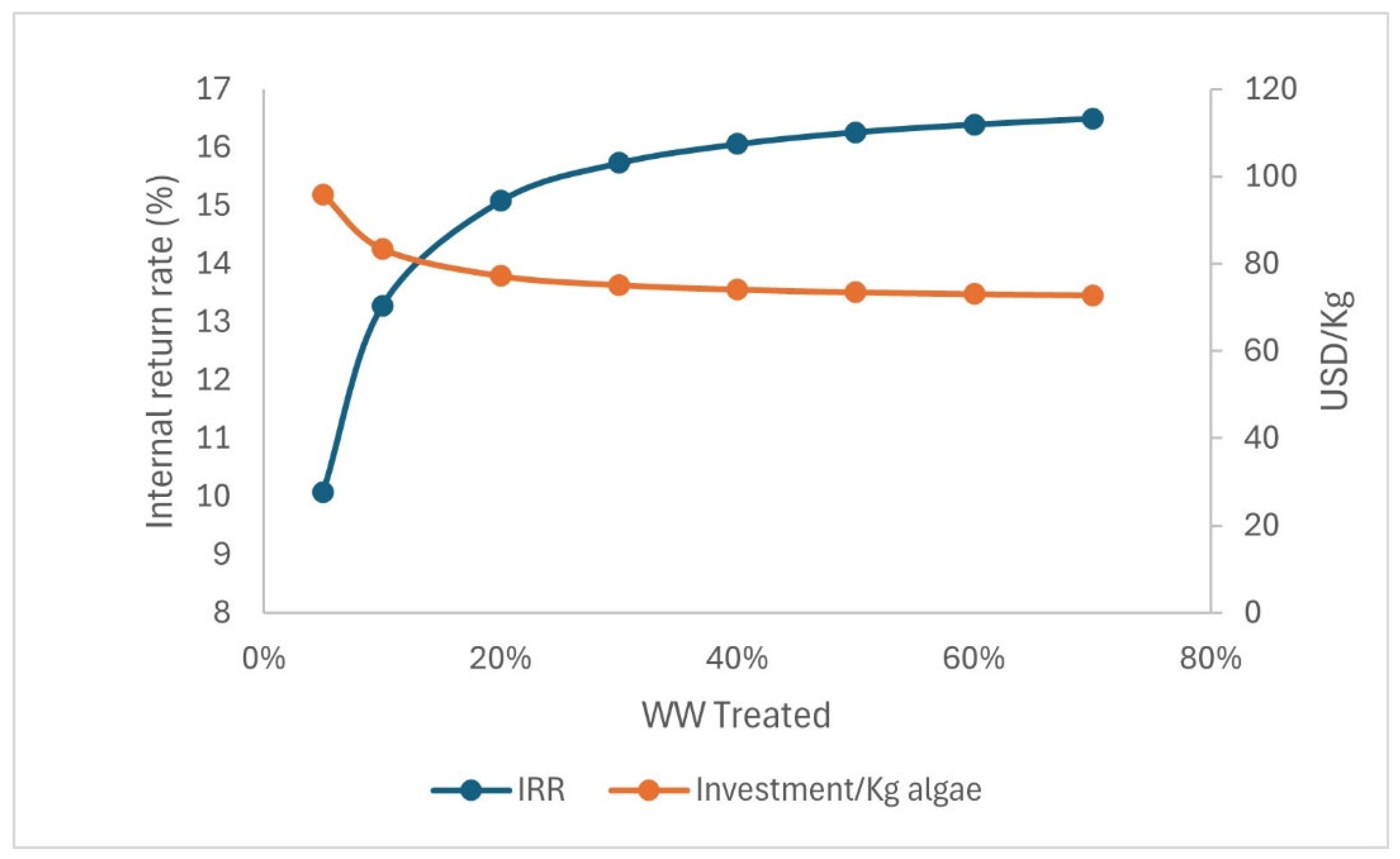 Pérez Mesa, A.; Céspedes Grattz, P.A.; Vidal Vargas, J.J.; Ríos, L.A.; Ocampo Echeverri, D. Techno-Economic Assessment of Microalgae-Based Biofertilizer Production from Municipal Wastewater Using Scenedesmus sp. Water 2025, 17, 2941. https://doi.org/10.3390/w17202941