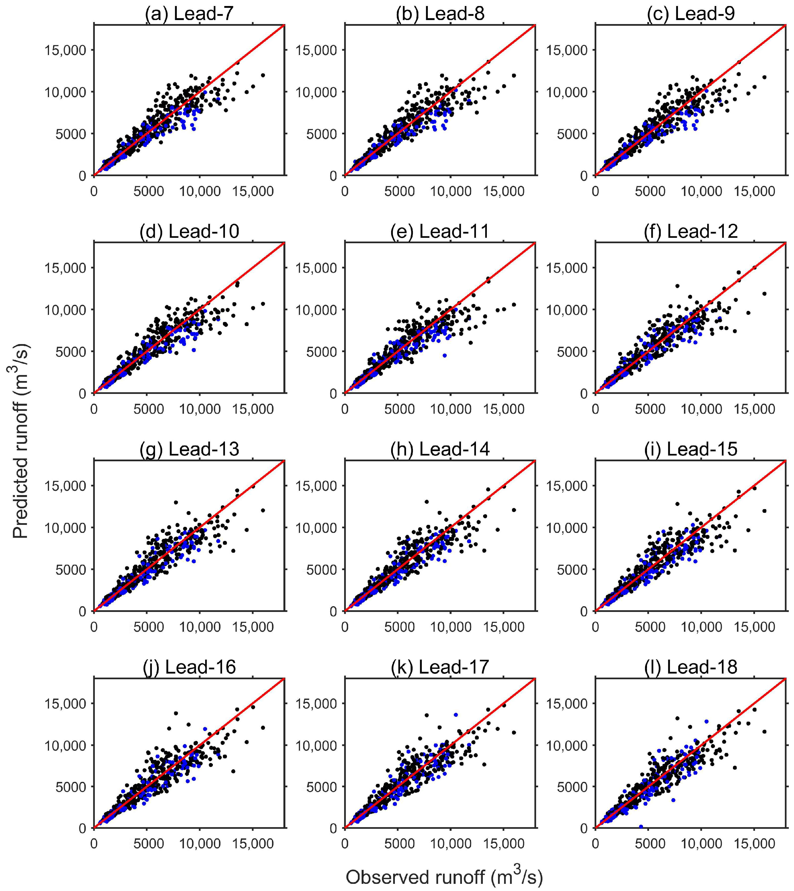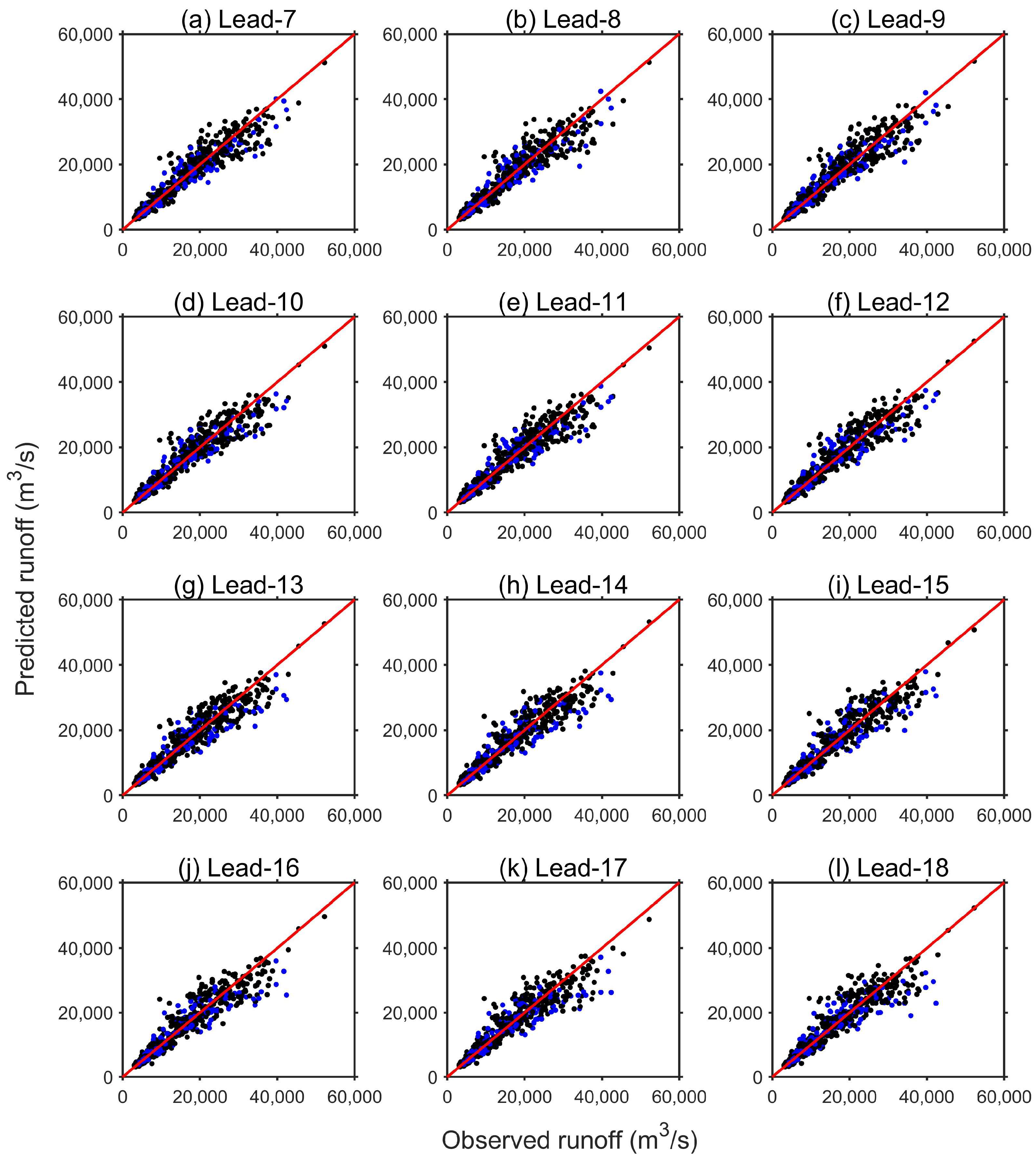 - Liu, L.; Xiao, C.; Du, L.; Zhang, P.; Wang, G. Extended-Range Runoff Forecasting Using a One-Way Coupled Climate-Hydrological Model: Case Studies of the Yiluo and Beijiang Rivers in China. Water 2019, 11, 1150. [Google Scholar] [CrossRef]