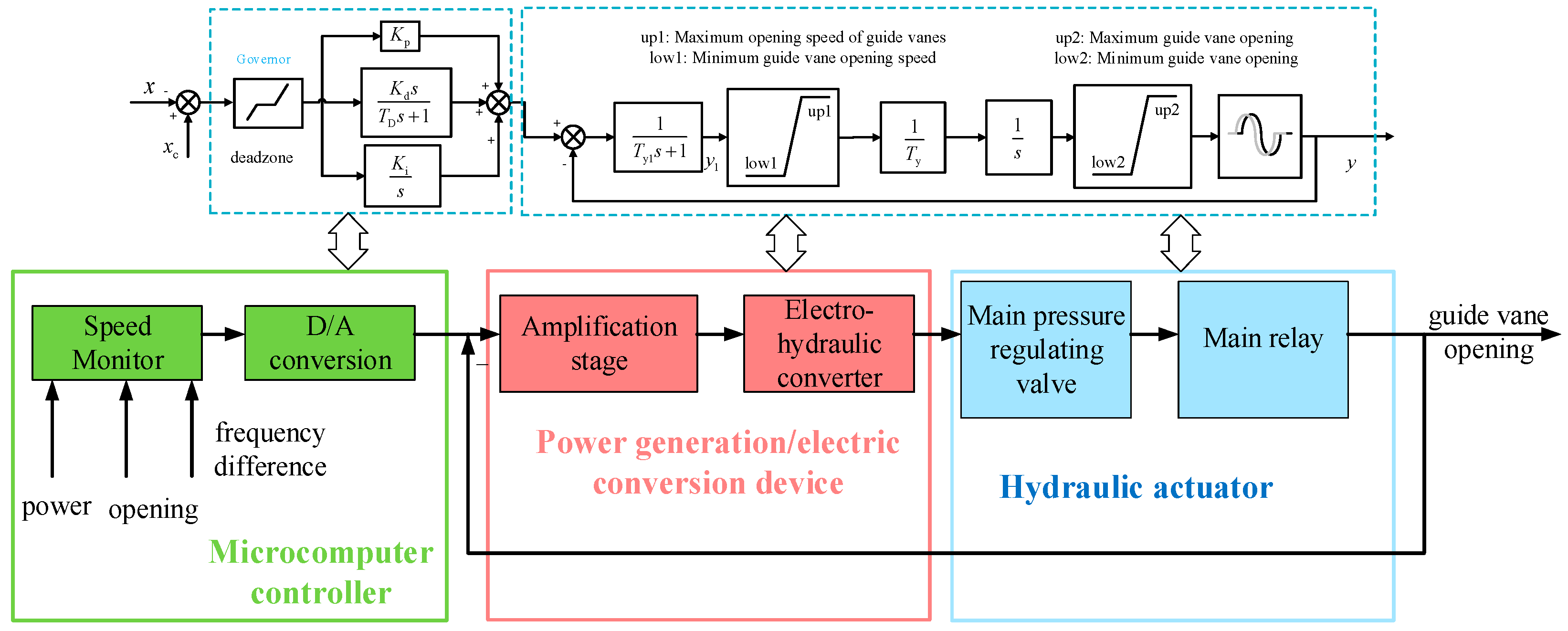 Schematic diagram of the composition of a hydro turbine governor.