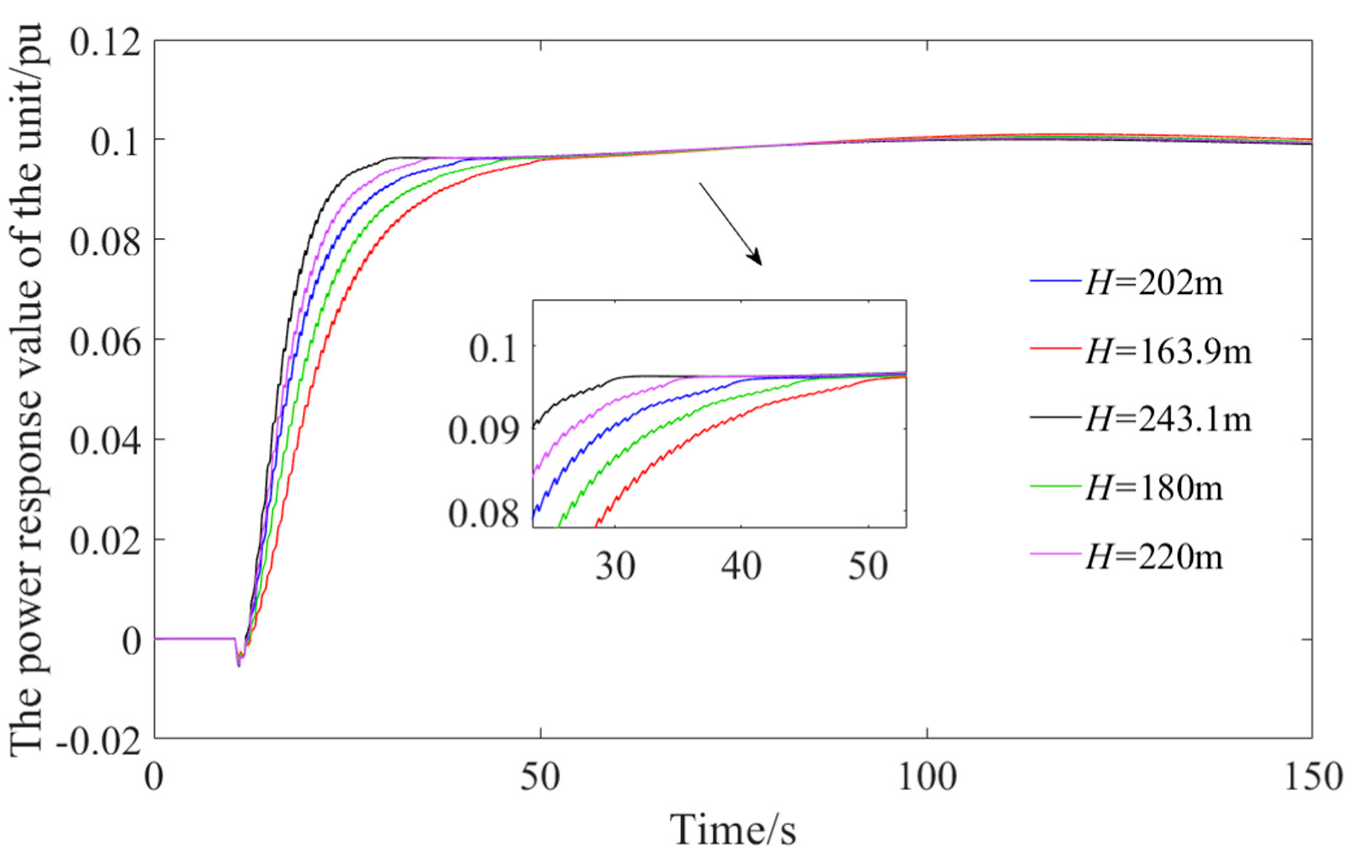 Frequency Fluctuation Value | Water Head (m) | Adjustment Time (s) | Load Adjustment Range (%) |