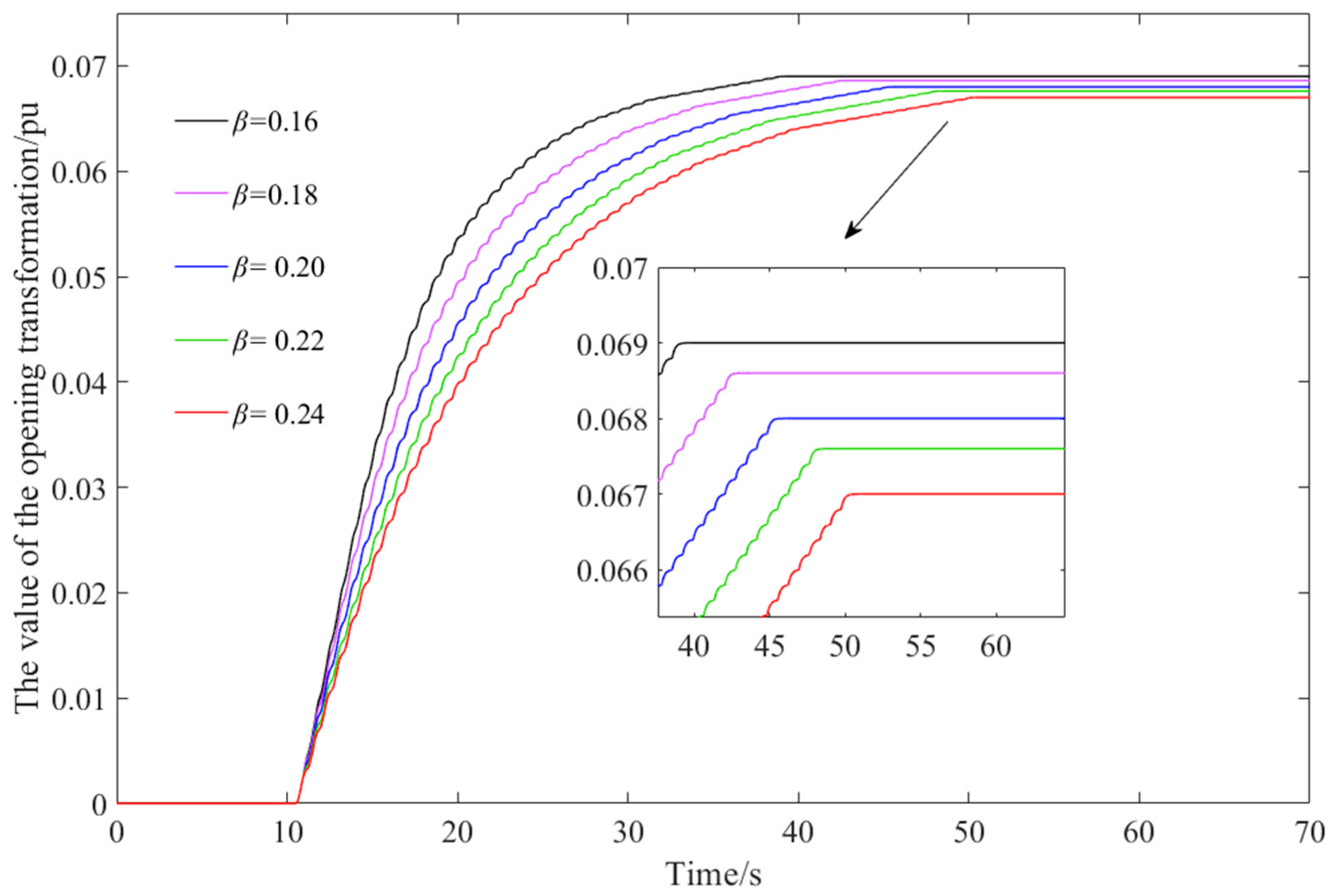 Different steady-state transfer coefficients for hydropower station frequency response process indicators.