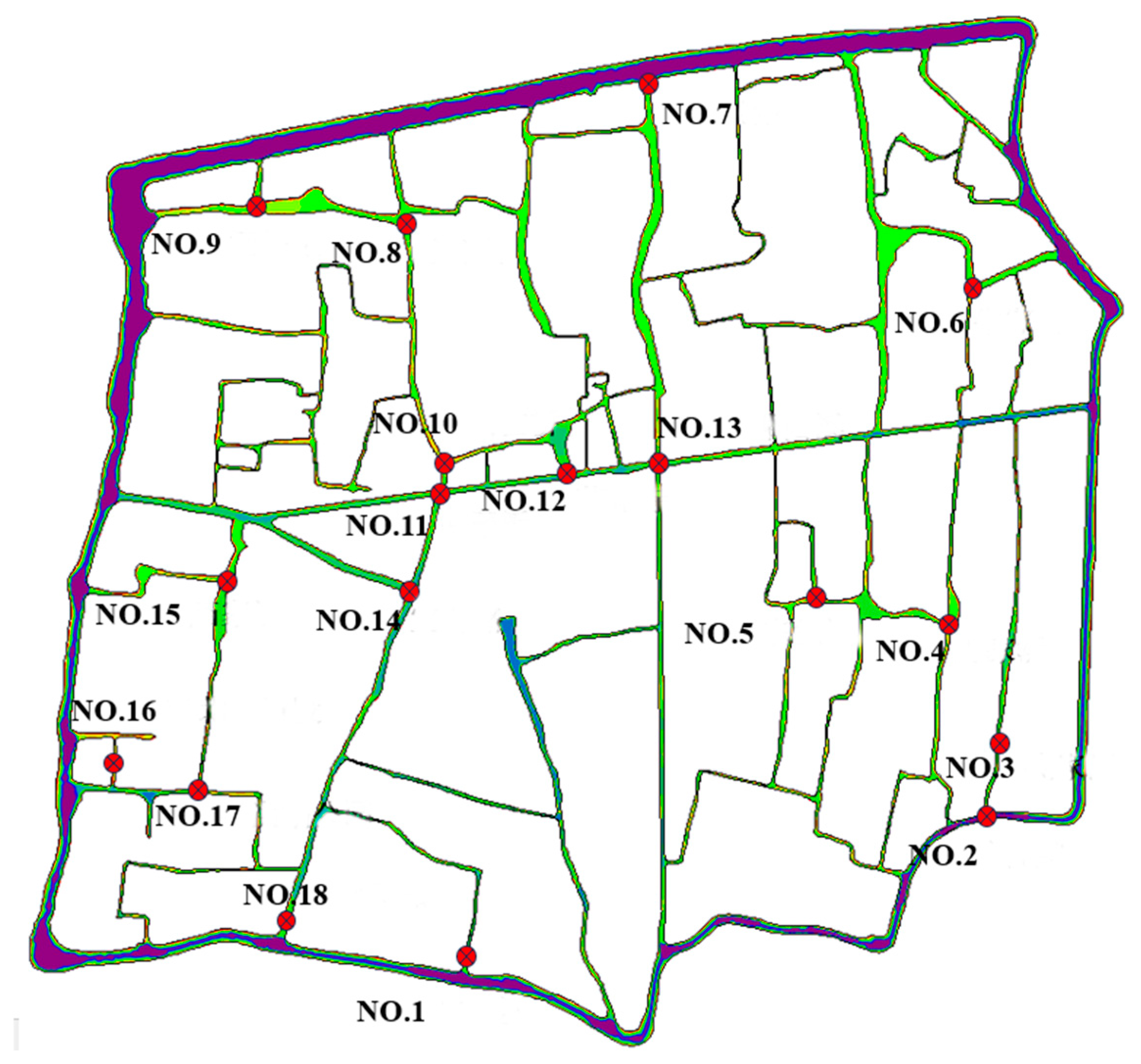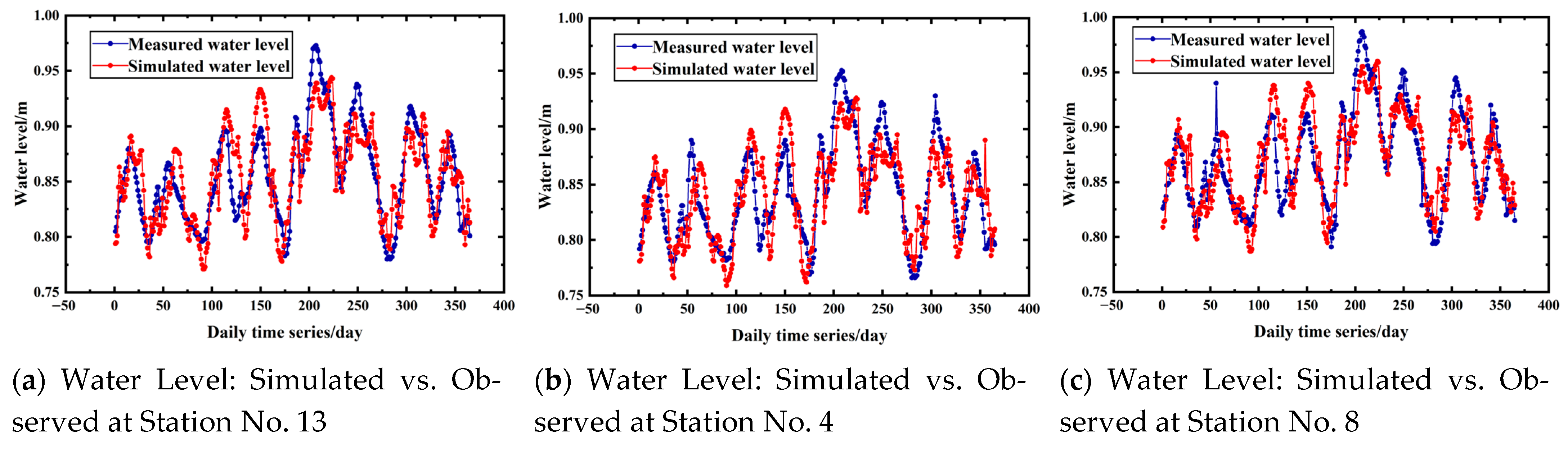 - Li, X.; Tang, H.W.; Wang, L.L.; Hu, Z.J.; Jiao, C. Hydro-environmental simulation of integrated regulation of sluice-pump systems in plain river network regions. J. Hohai Univ. (Nat. Sci.) 2016, 44, 393–399. [Google Scholar]