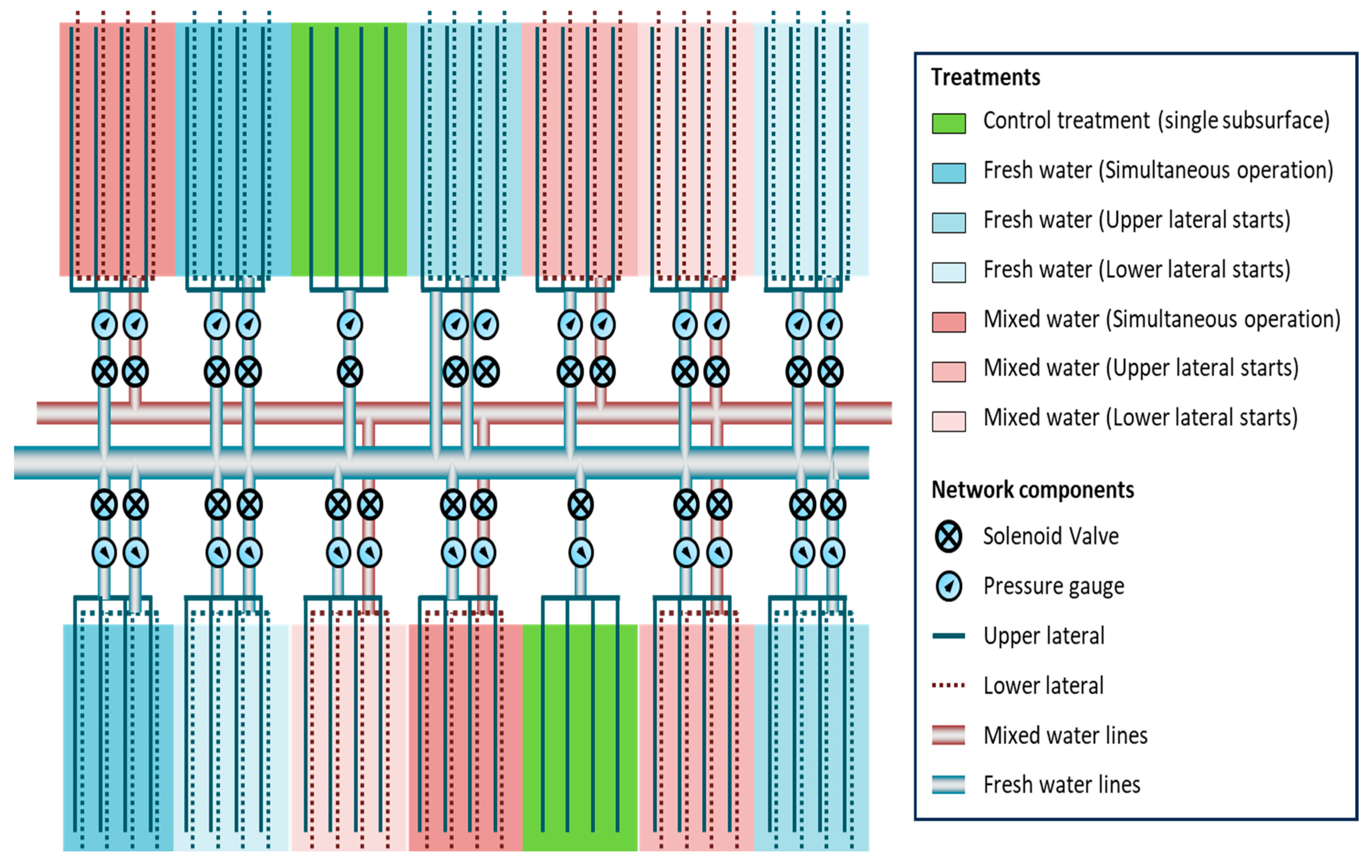 APA StyleAlazba, A. A., Elnesr, M. N., Radwan, F., Alrdyan, N., & Ezzeldin, M. (2025). Water Productivity and Crop Response to Dual-Lateral Subsurface Drip Irrigation Using Brackish and Fresh Water Sources. Water, 17(20), 2953. https://doi.org/10.3390/w17202953