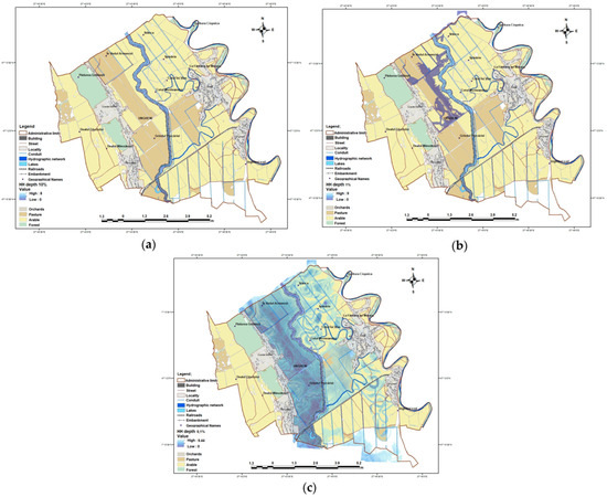 These three processes allow the generation of flood hazard maps, which provide information on the extent of the flooded areas, water depths, and, where appropriate, water velocity, for the floods that may occur over a specific period of time [10,11]. The development of these maps is performed using various techniques, such as hydrological and hydraulic modeling, based on a detailed mapping of the river and the major riverbed [3,12].