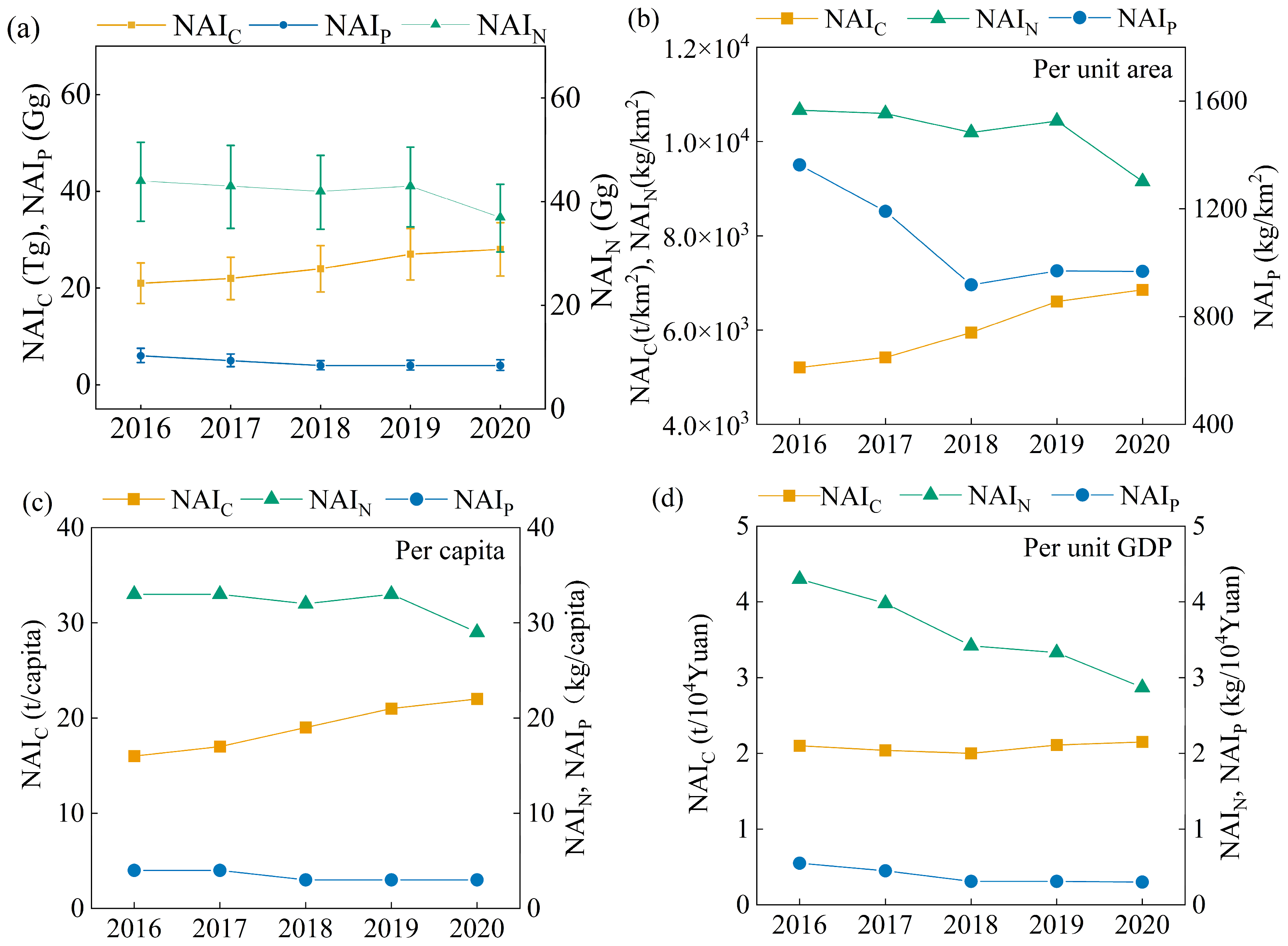 3.1. Dynamic Changes in Net Anthropogenic C, N, and P Inputs