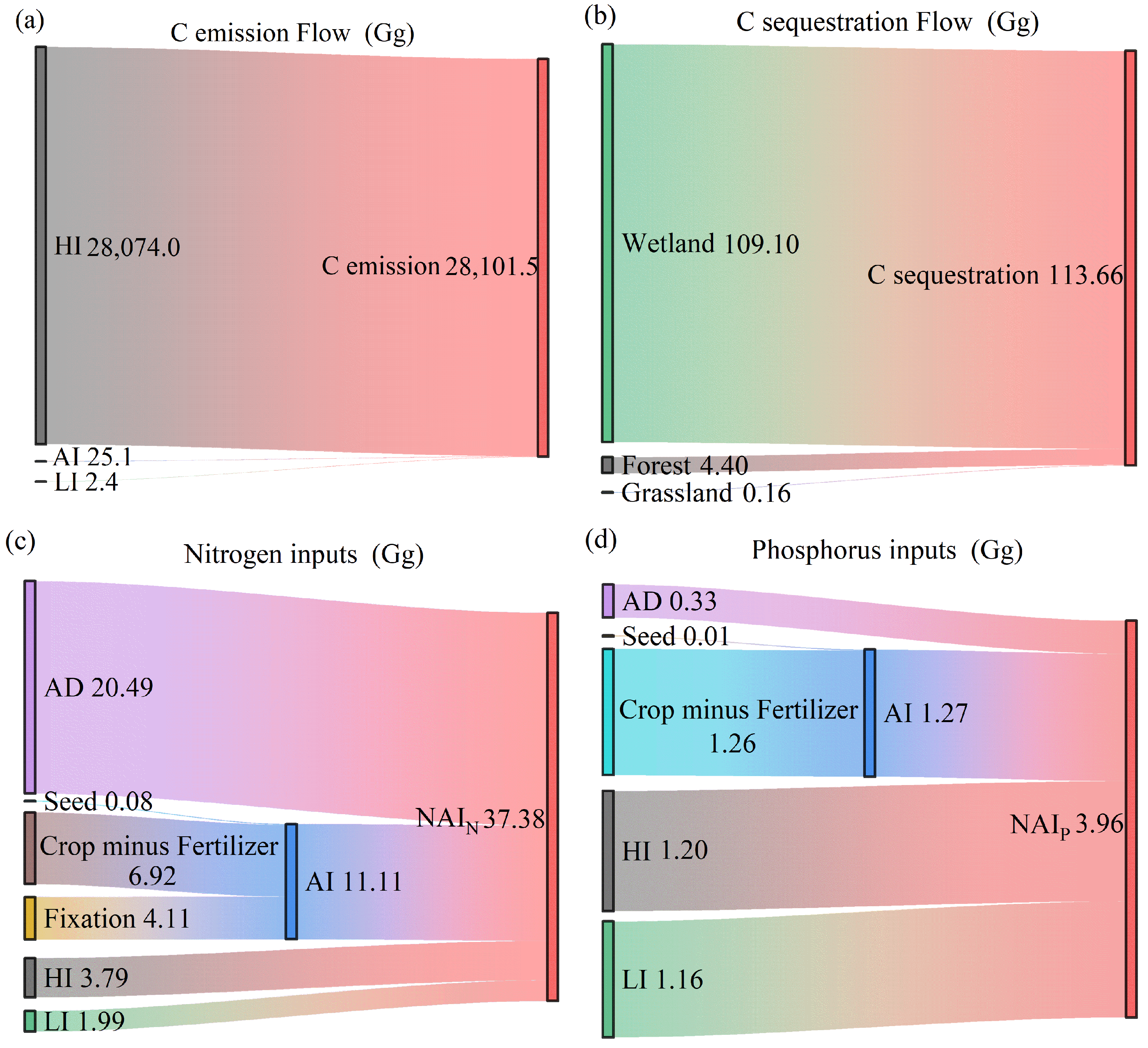 2.3. Comprehensive Environmental Impact Assessment Model for Anthropogenic C, N, and P Inputs