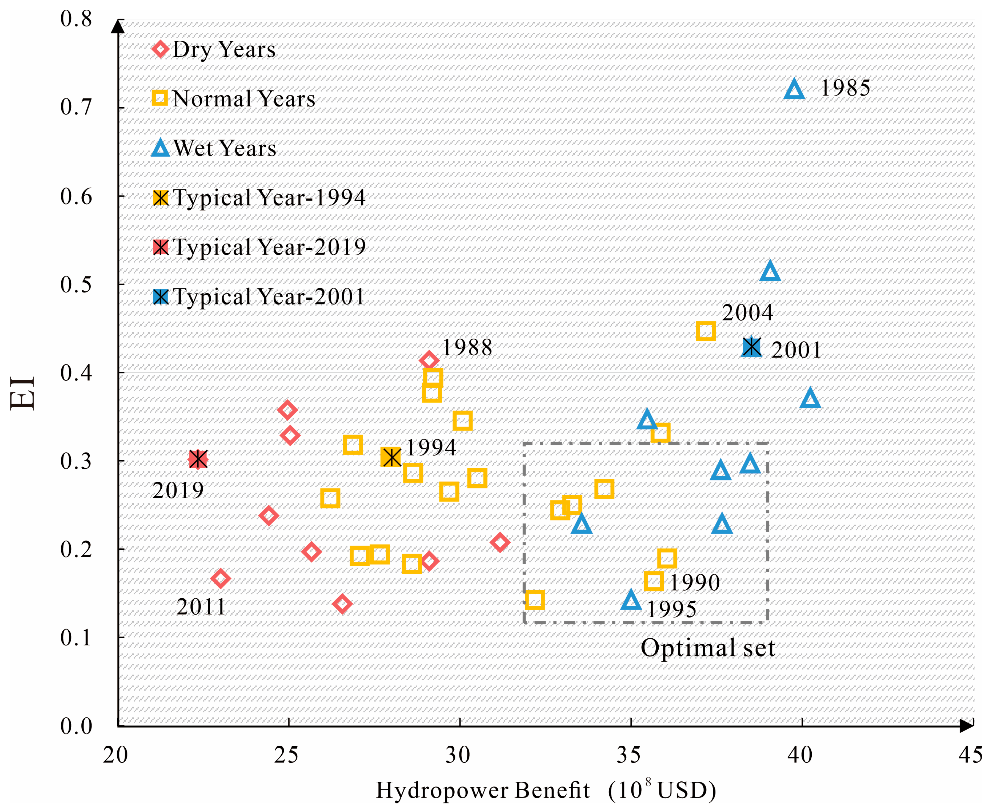 4.4. Response Characteristics of Hydropower Scheduling on EI Under Different Hydrological Year Types