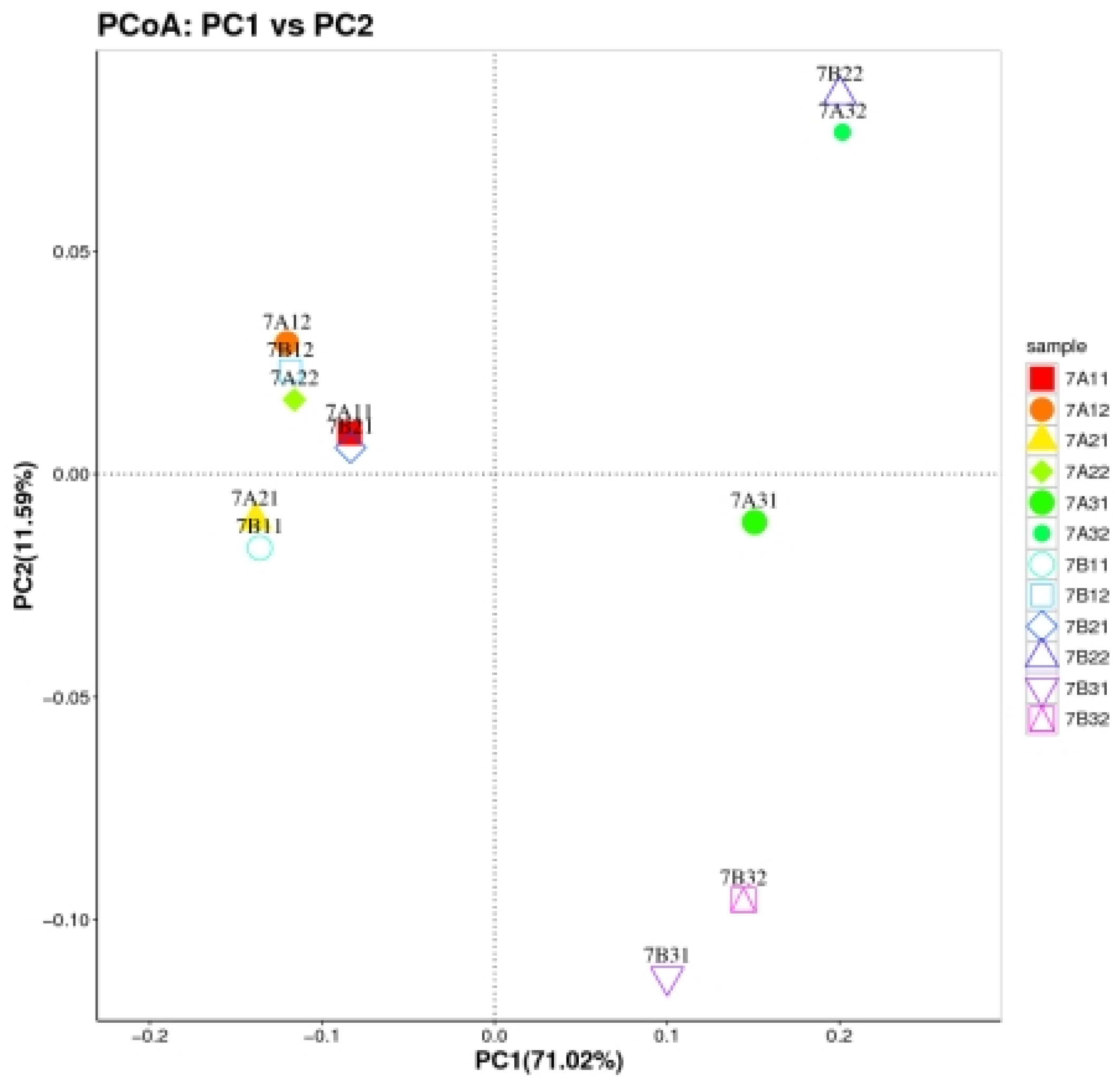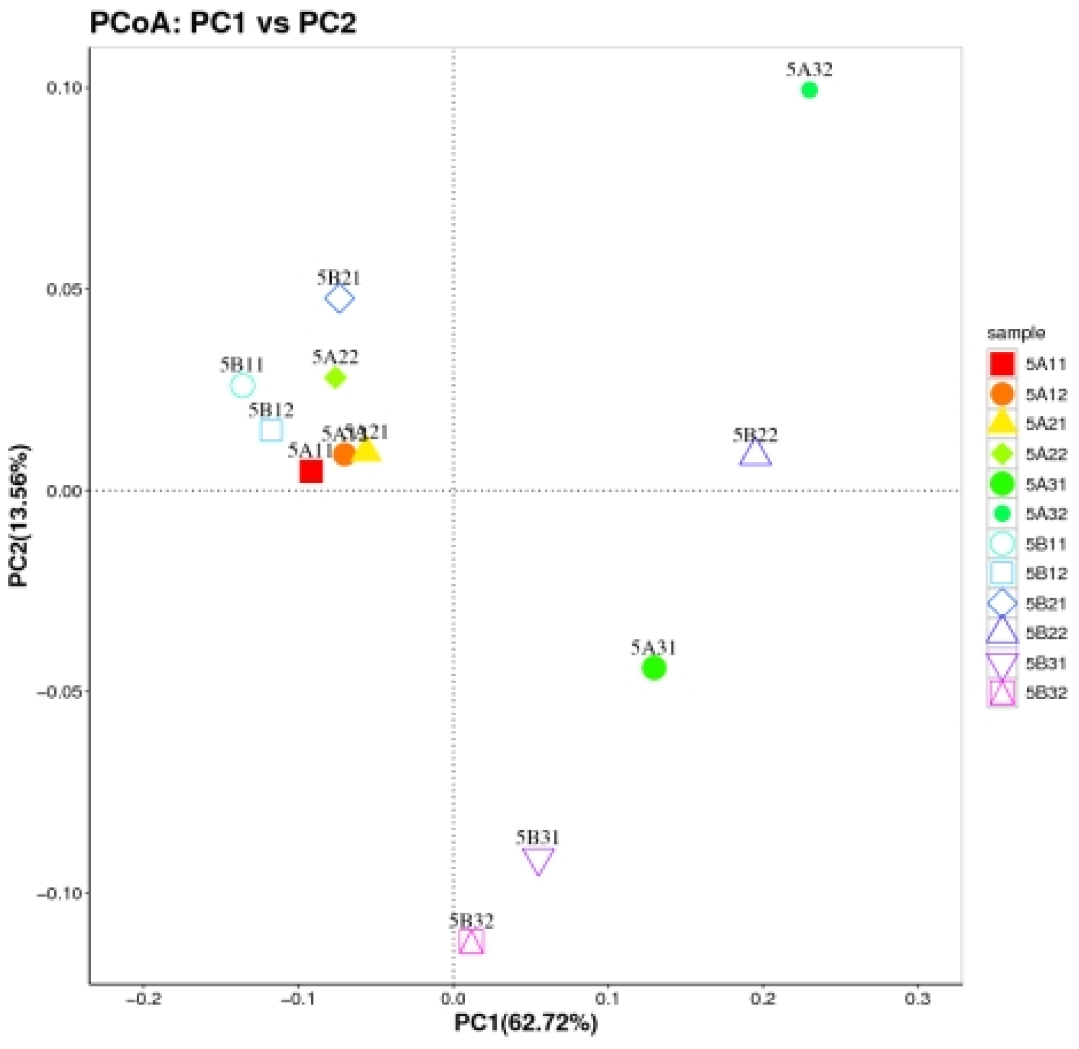 3.3.2. Microbial α-Diversity and PCoA