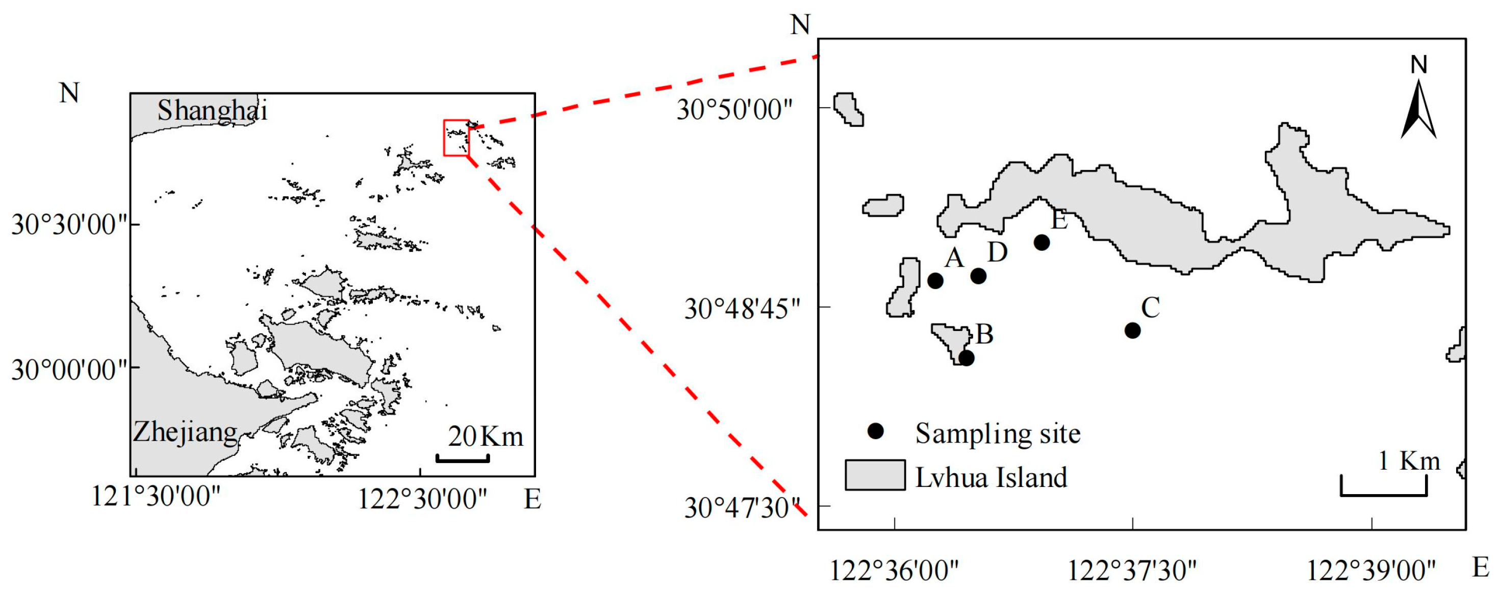 - Luo, M.; Lu, J.; Shen, X.; Wang, Y.; Xu, Z.; Zhu, J. The Impact of Large-scale Marine Engineering on the Ecological Distribution of Large Benthic Animals in the Surrounding Waters of Yangshan Island. J. Agric. Environ. Sci. 2007, 26, 97–102. [Google Scholar]