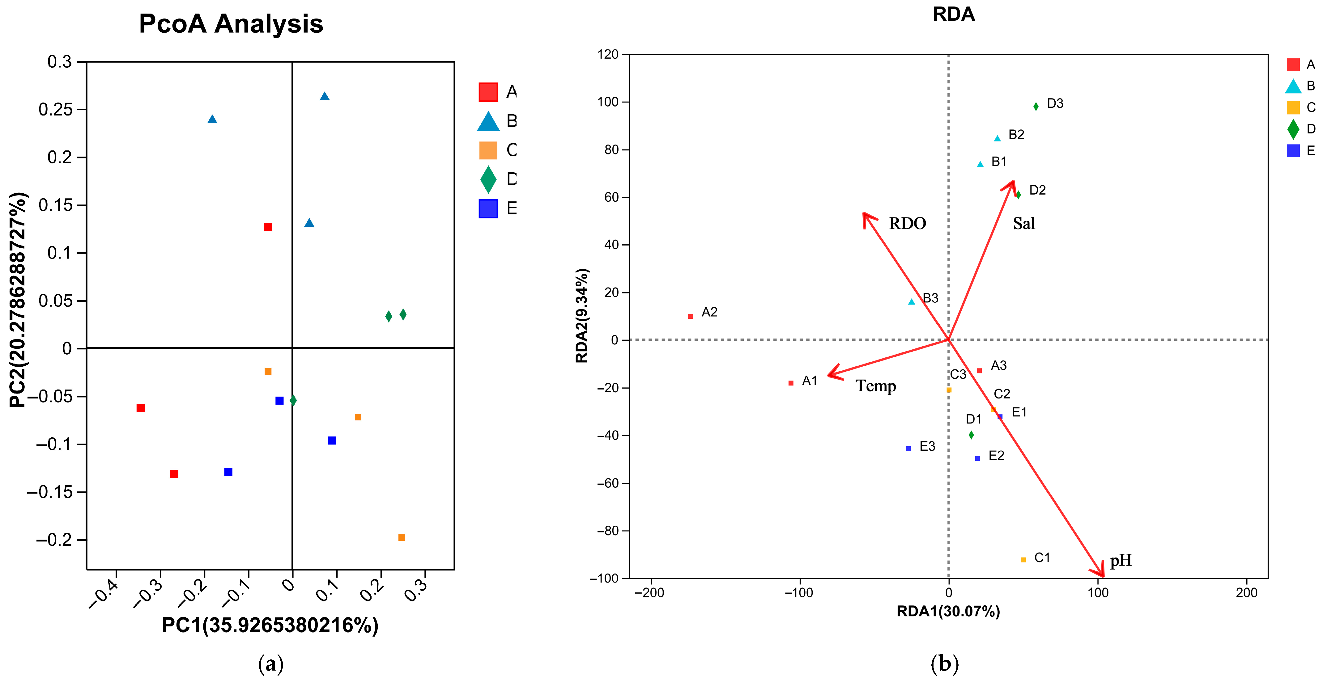 2.3.2. Community Structure and Environmental Factors