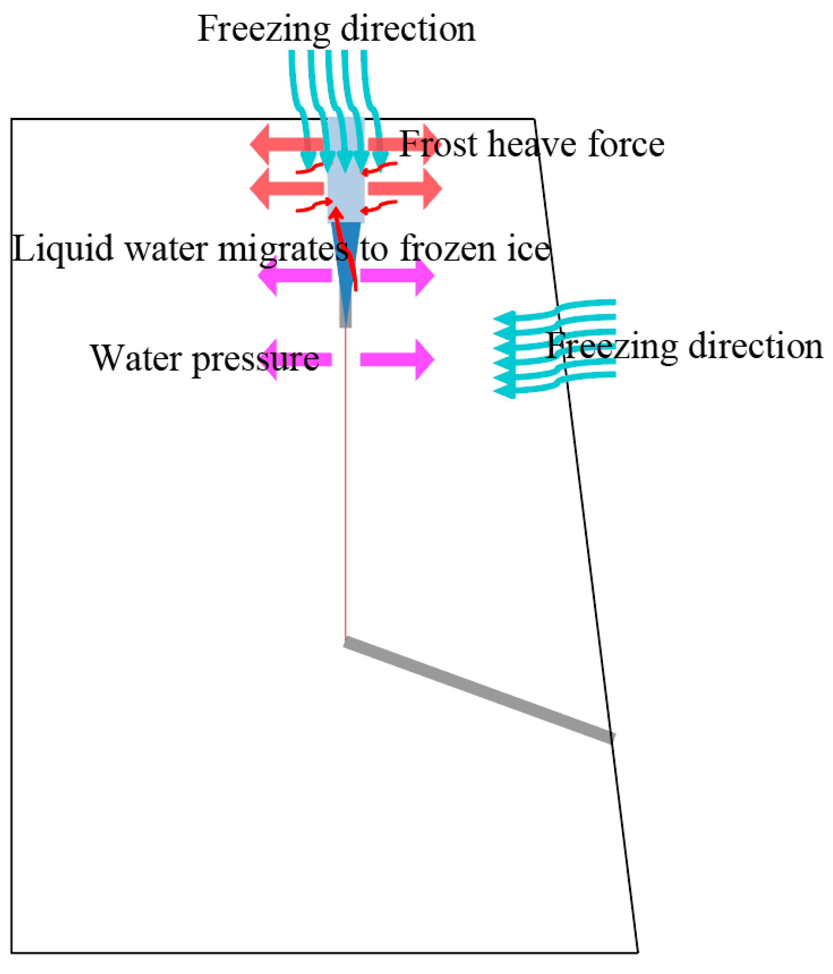 8. Konrad, J.M.; Duquennoi, C. A model for water transport and ice lensing in freezing soils. Water Resour. Res. 1993, 29, 3109–3124. [Google Scholar] [CrossRef]
