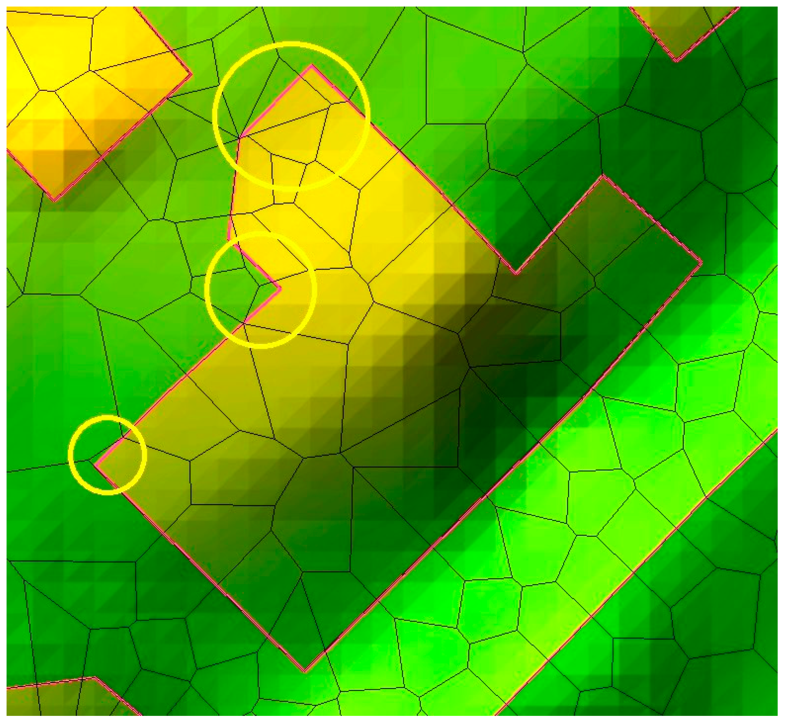 - Building void (BV): Consider buildings as voids in the mesh. These areas are not taken into account for the analysis and computations;