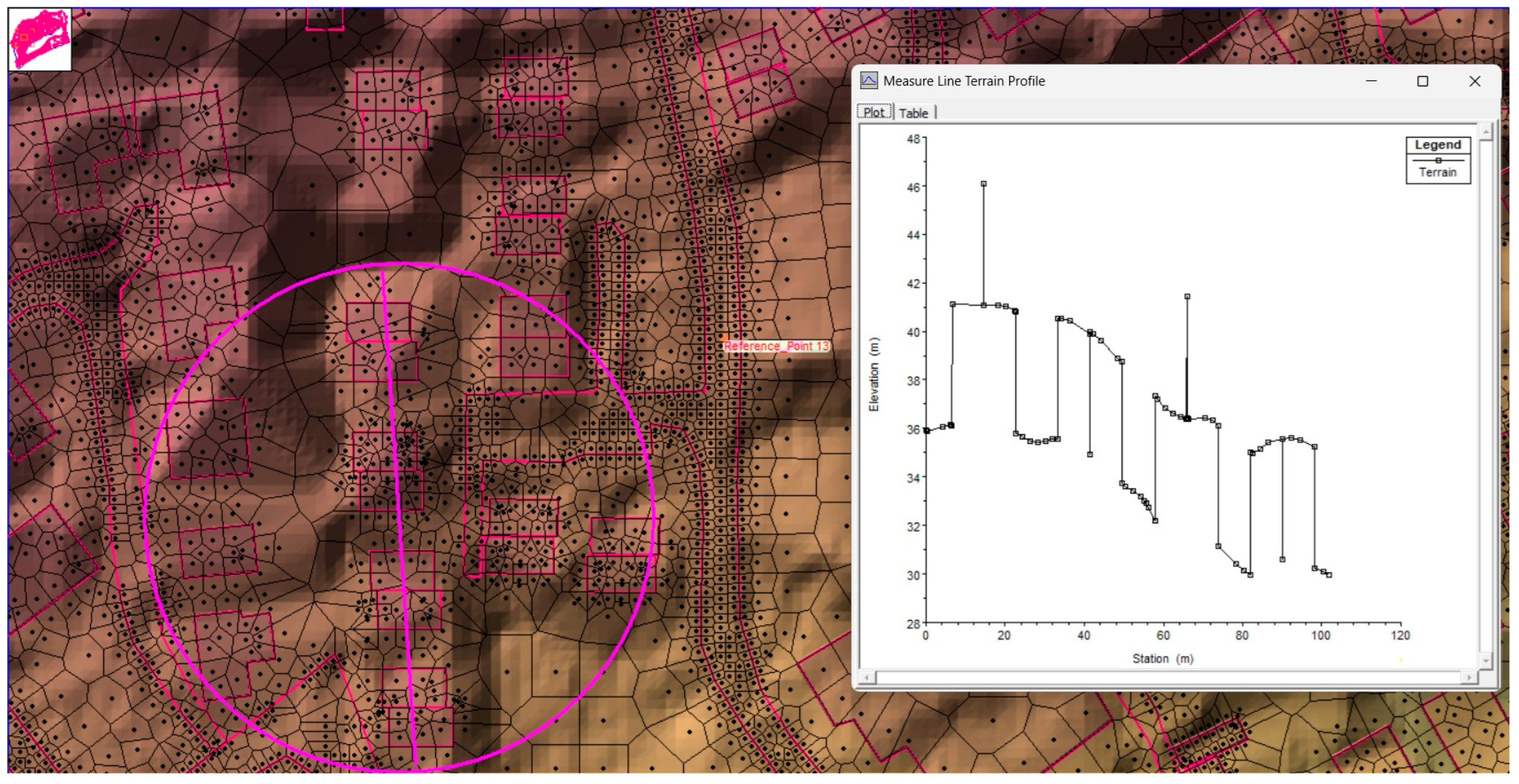 - Building block method (BB): Involves adding artificial elevations to the topography of the buildings’ footprints.