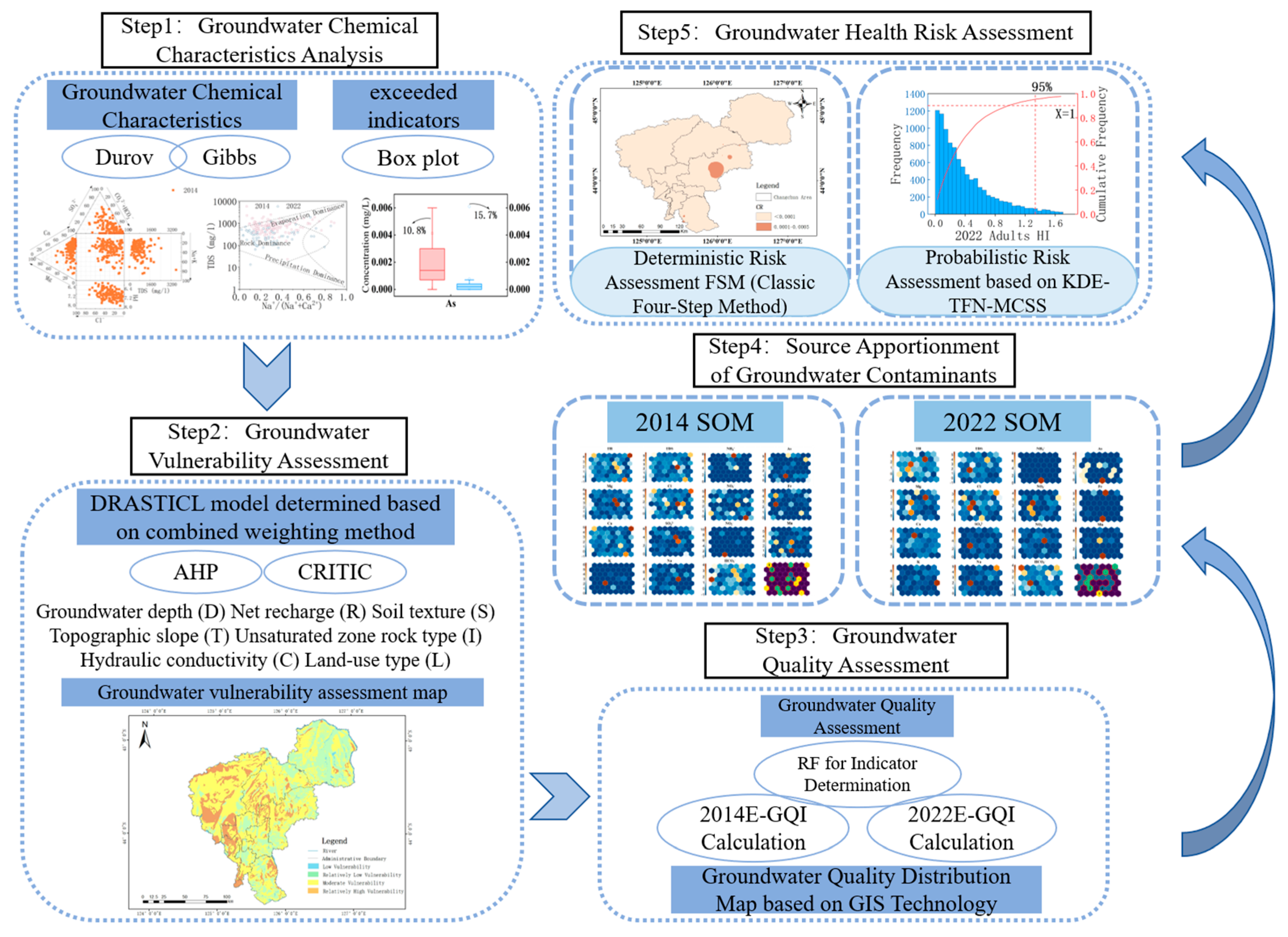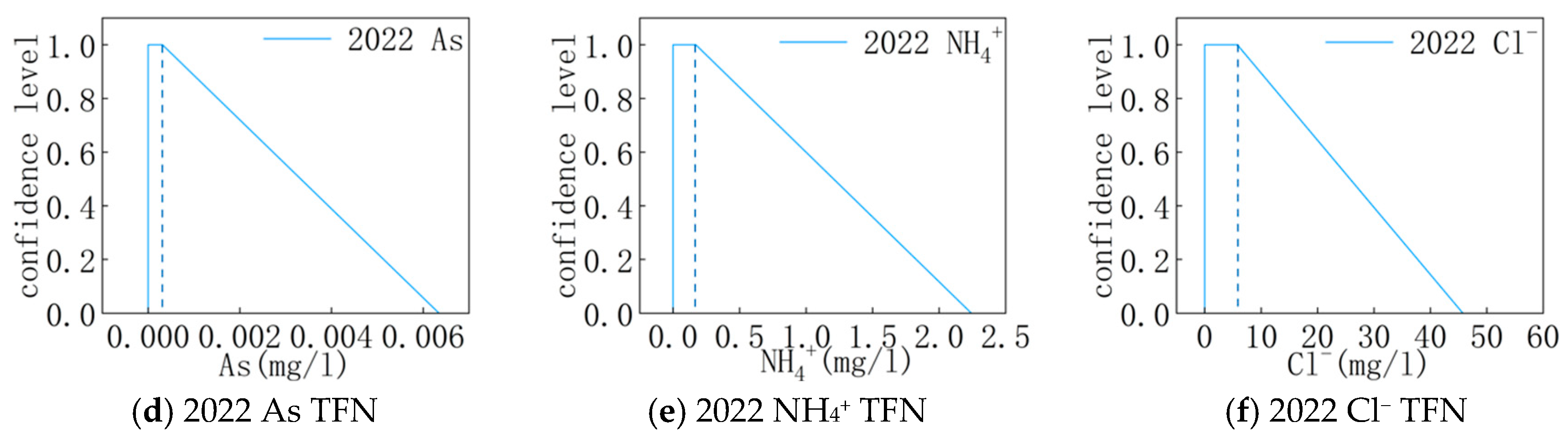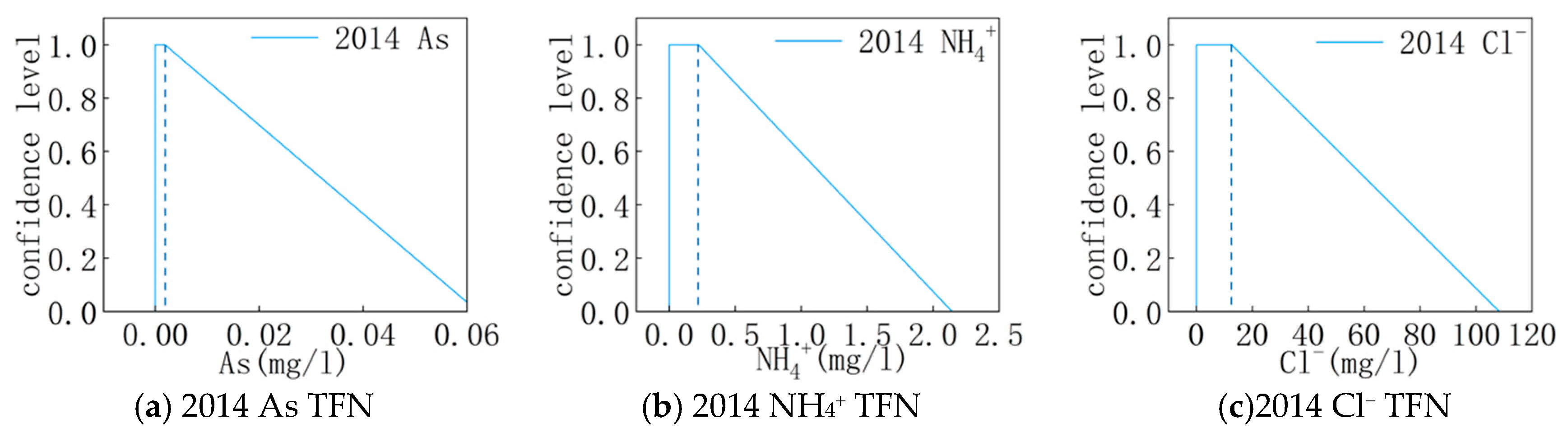 - Li, T.; Bian, J.; Ruan, D.; Xu, L.; Zhang, S. Groundwater health risk assessment and its temporal and spatial evolution based on trapezoidal fuzzy number-Monte Carlo stochastic simulation: A case study in western Jilin province. Ecotoxicol. Environ. Saf. 2024, 282, 116736. [Google Scholar] [CrossRef]