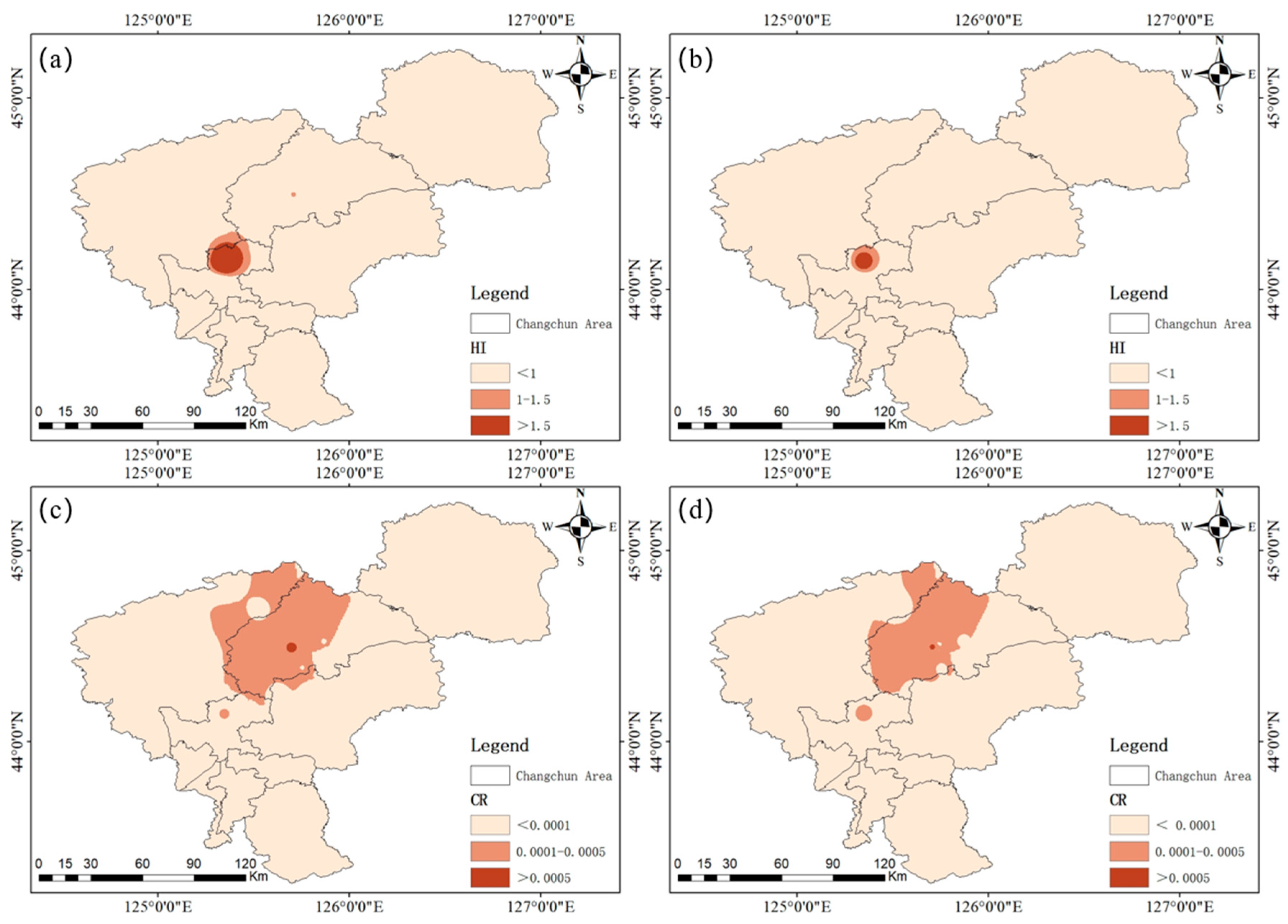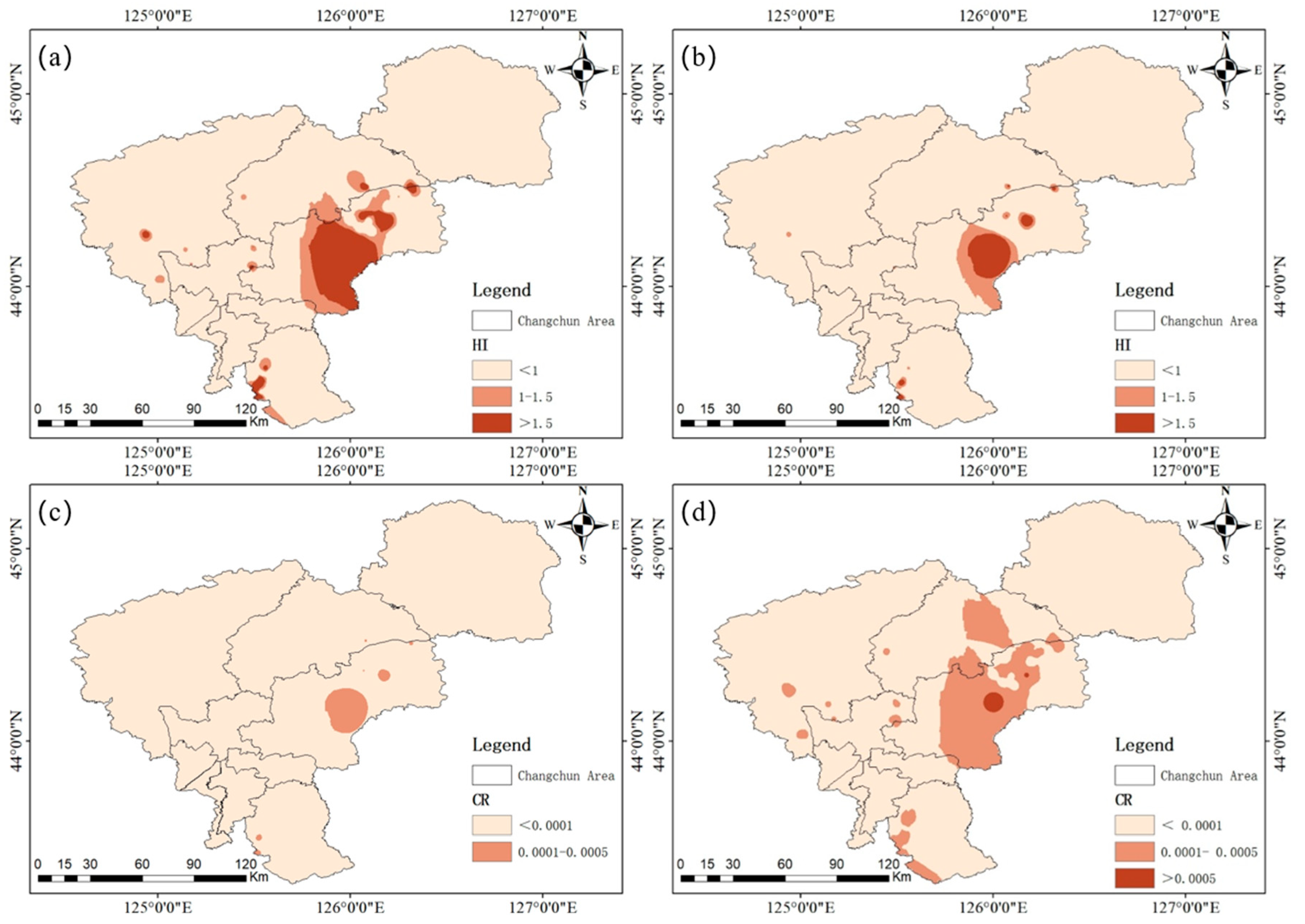 - The NH4+, As, and Cl− indicators were selected for health risk assessments using the conventional FSM and proposed KDE-TFN-MCSS models. Under the ingestion pathway, most areas in the central Songnen Plain exhibited acceptable risk levels for both children and adults, with a higher probability of low to moderate risks. The HI levels were consistently higher in children, whereas the CR levels were higher in adults. Although overall groundwater quality improved in 2022, the unique coupling of freeze–thaw cycles and urbanization in the case study cold region led to persistent NH4+ and As accumulation in localized areas. Therefore, zonal management of de-icing zones and legacy industrial belts in the case study region is recommended to balance groundwater development with ecological safety.