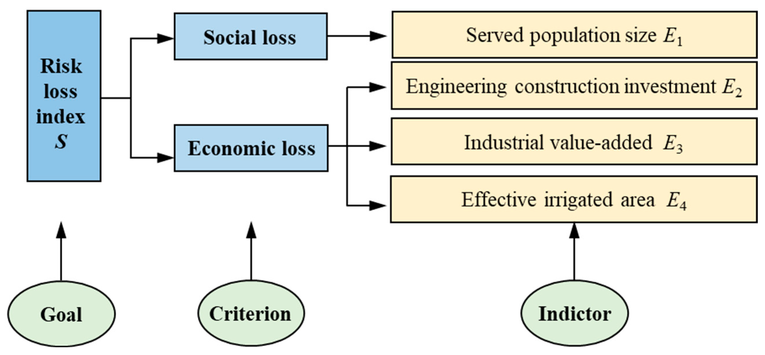 Table 8. The indicator weights of risk loss assessment indicator for water conveyance channels.