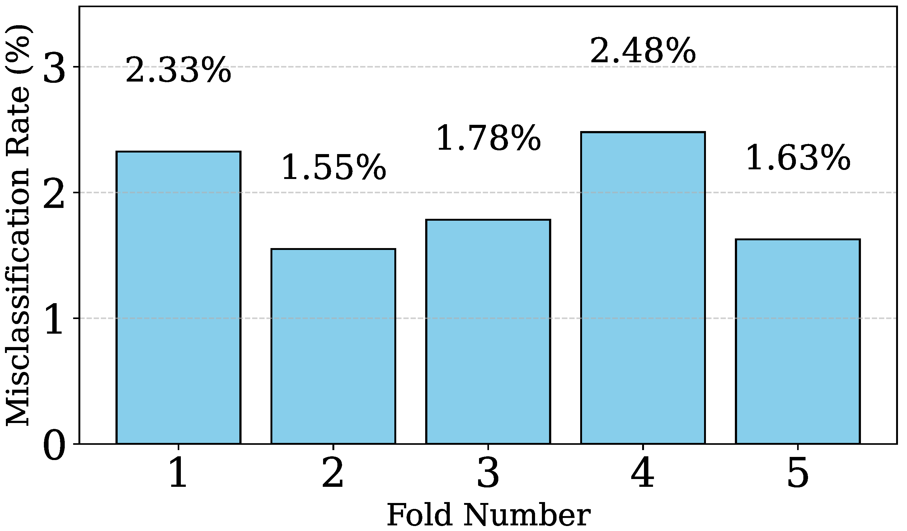 Fold-5 | 100 | 100 | 100 | 100 | 98.37 | 98.37 | 98.38 | 98.38 |