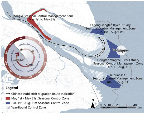 - Zhu, J.; Guo, W.; Li, Z.; Jiang, W. First Insights into the Migration Route and Spatial Distribution of the Endangered Chinese Sturgeon (Acipenser sinensis) in the Yangtze River Estuary. Fishes 2024, 9, 321. [Google Scholar] [CrossRef]