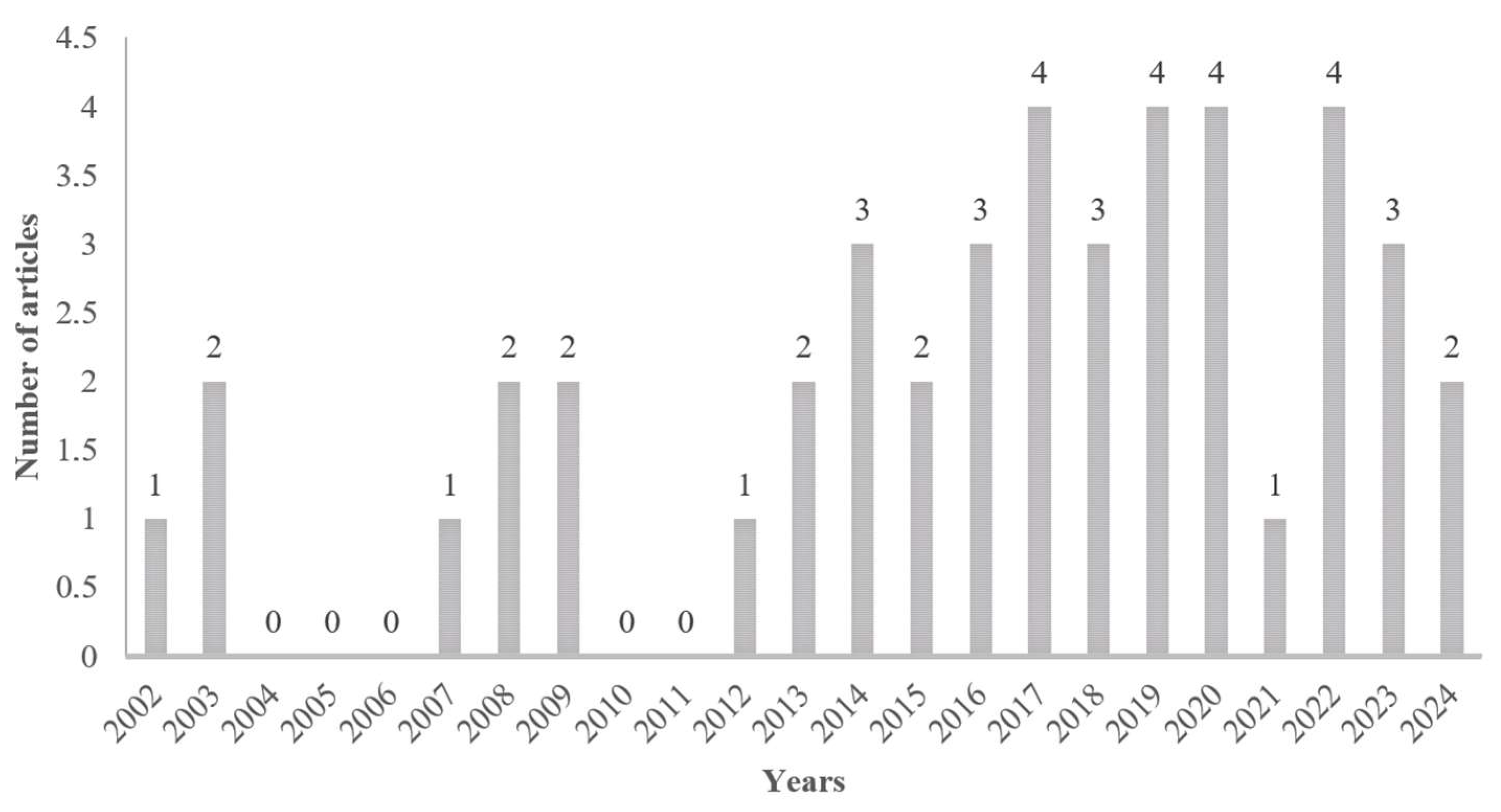 Scopus | TITLE-ABS-KEY (“Water Source” OR “Conventional water” OR “Non-conventional water” OR “Water Supply System” OR “Water Resource System”) AND (“Surface water” OR Groundwater OR “Brackish water” OR Effluent OR Greywater OR “Reclaimed wastewater” OR “Harvested rainwater” OR “Harvested stormwater” OR “Atmospheric Water” OR “Desalinated water” OR “Urban runoff”) AND NOT (Health OR Biodiversity OR Climate OR Educat OR Culture OR Energy OR Hydrodynamic OR Ecology) AND DOCTYPE (ar OR re) AND (PUBYEAR > 1999 AND PUBYEAR < 2024) AND (LIMITTO (LANGUAGE, ”English”)) |