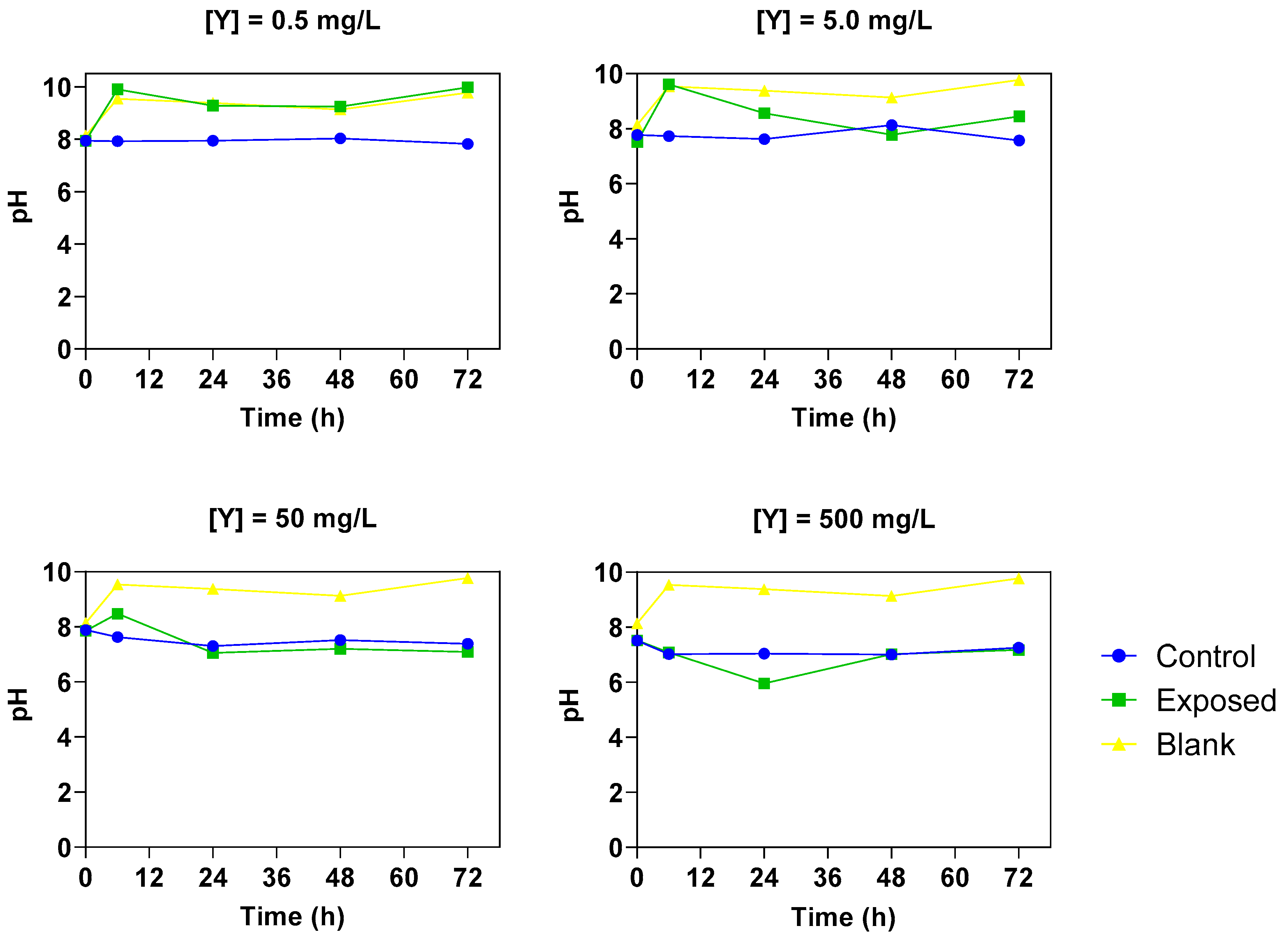 4.3. Biomarkers and Physiological Responses of Ulva sp. to Y Exposure