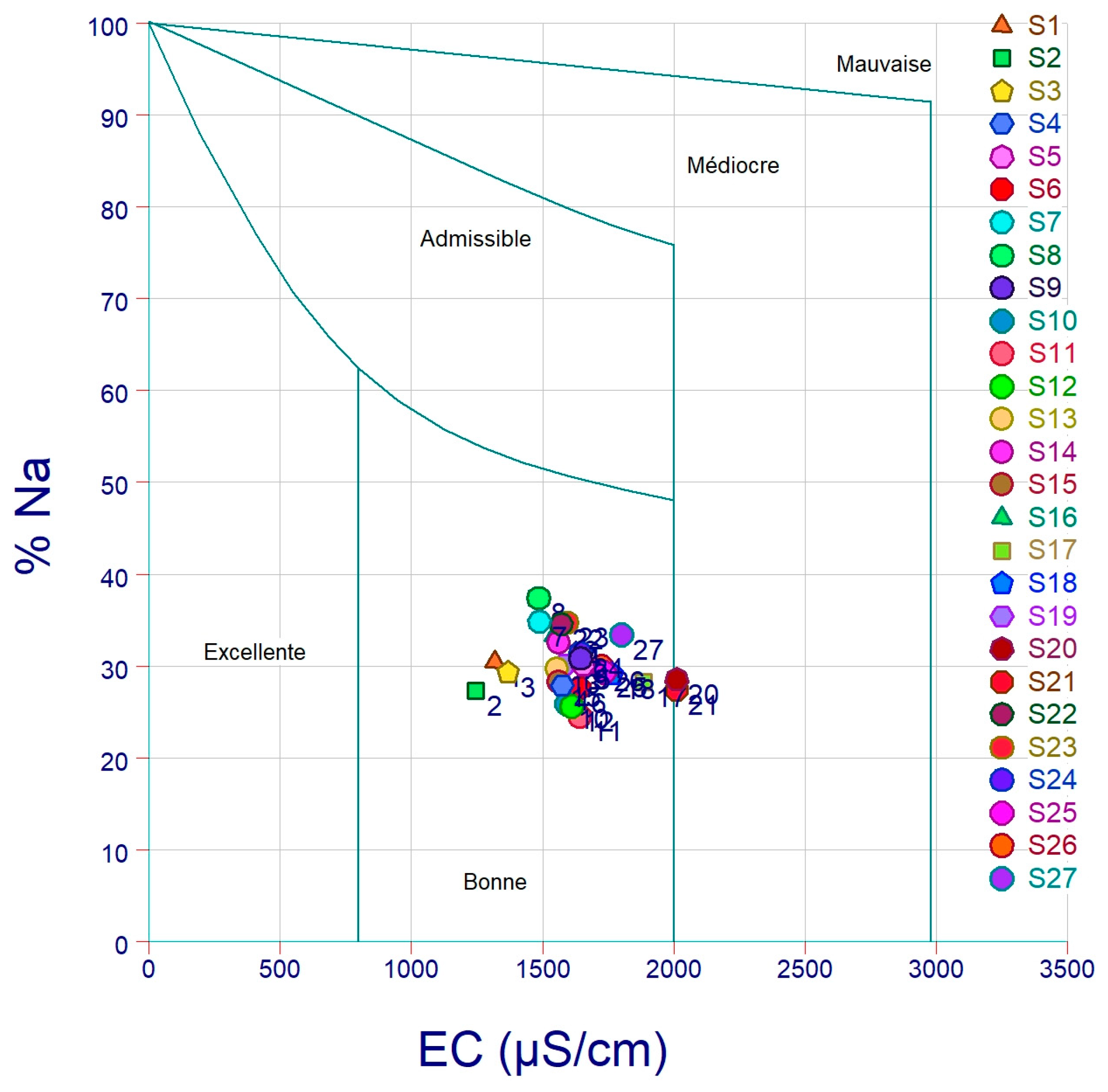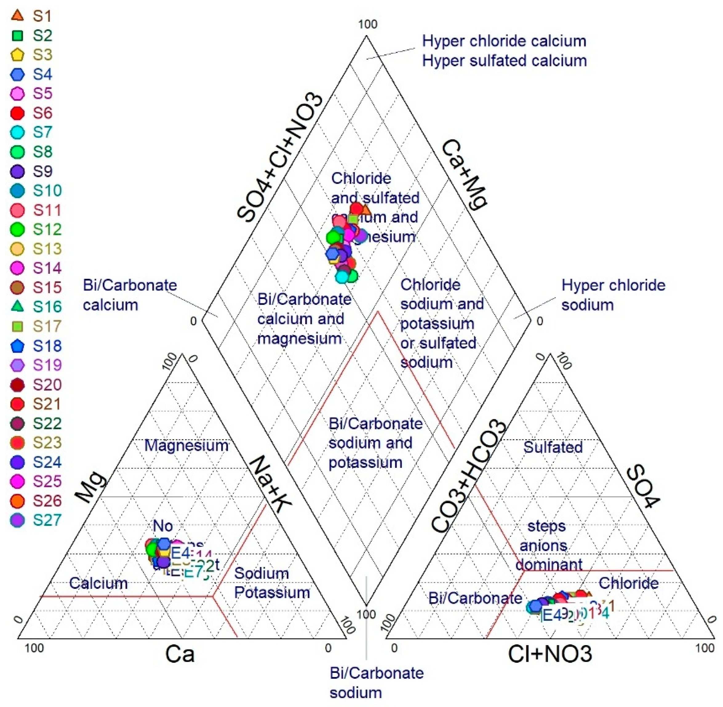 - Relative Homogeneity: The clustering of samples in a relatively restricted area of the diagram suggests a certain homogeneity in the geochemical processes controlling water chemistry across the studied aquifer, despite variations in well depths.
