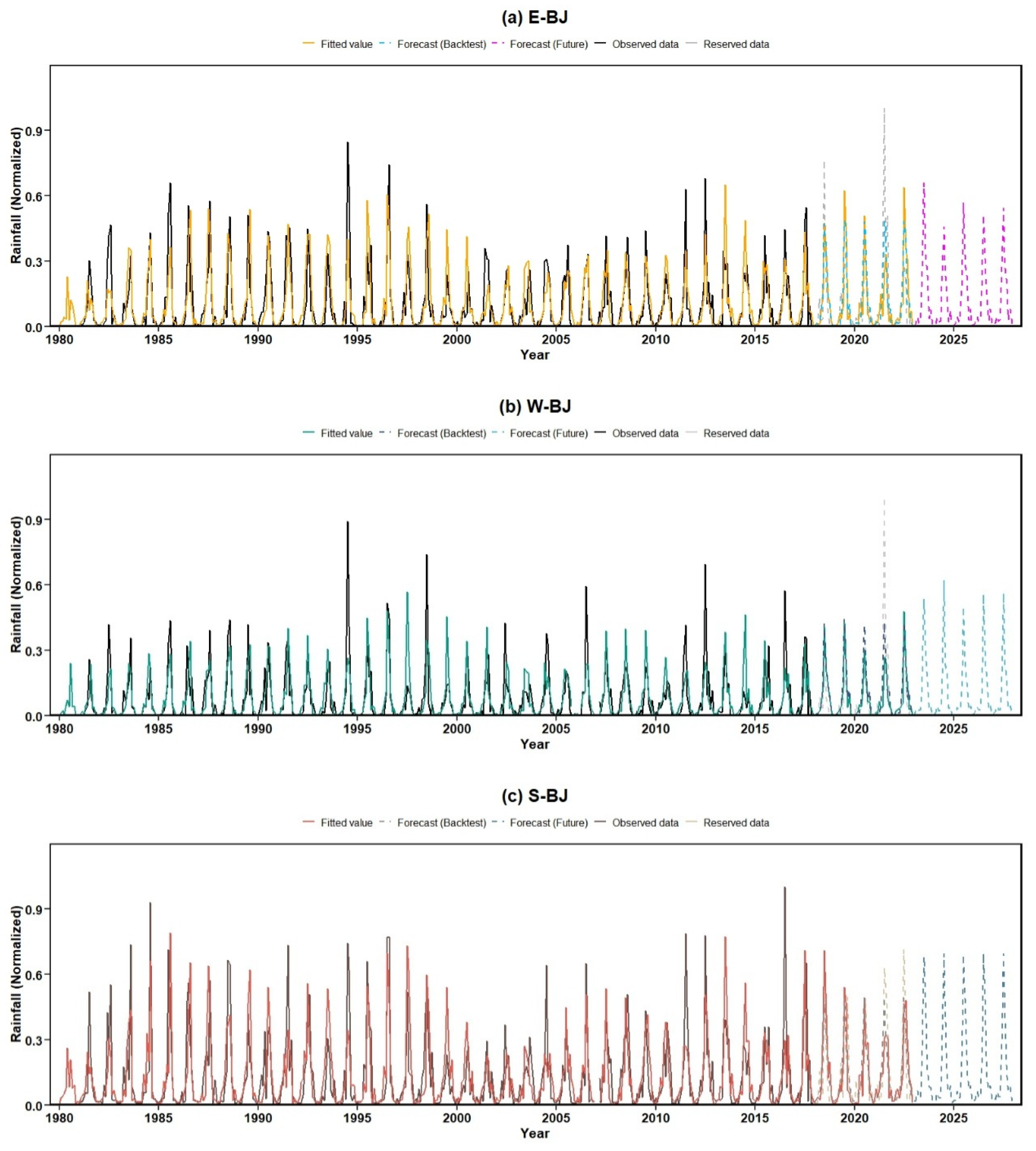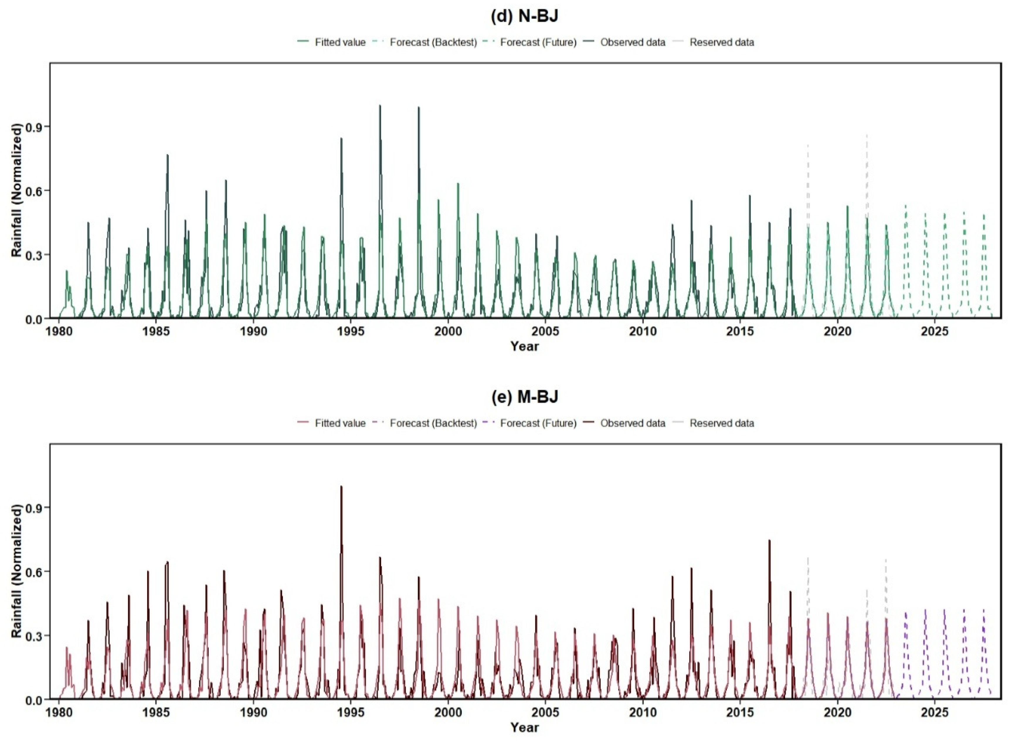 - Murthy, K.V.N.; Saravana, R.; Kumar, K.V. Modeling and forecasting rainfall patterns of southwest monsoons in North–East India as a SARIMA process. Meteorol. Atmos. Phys. 2018, 130, 99–106. [Google Scholar] [CrossRef]