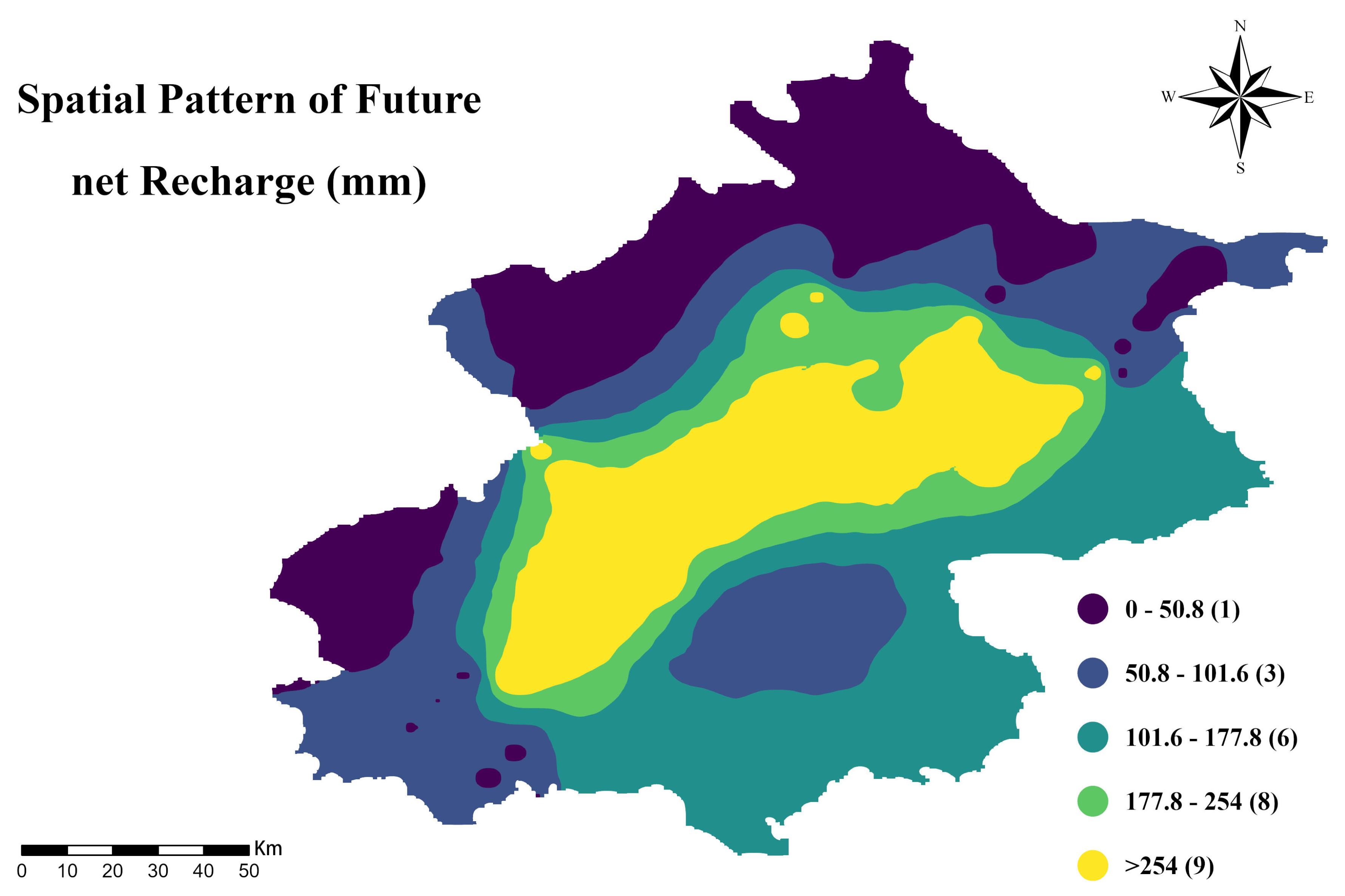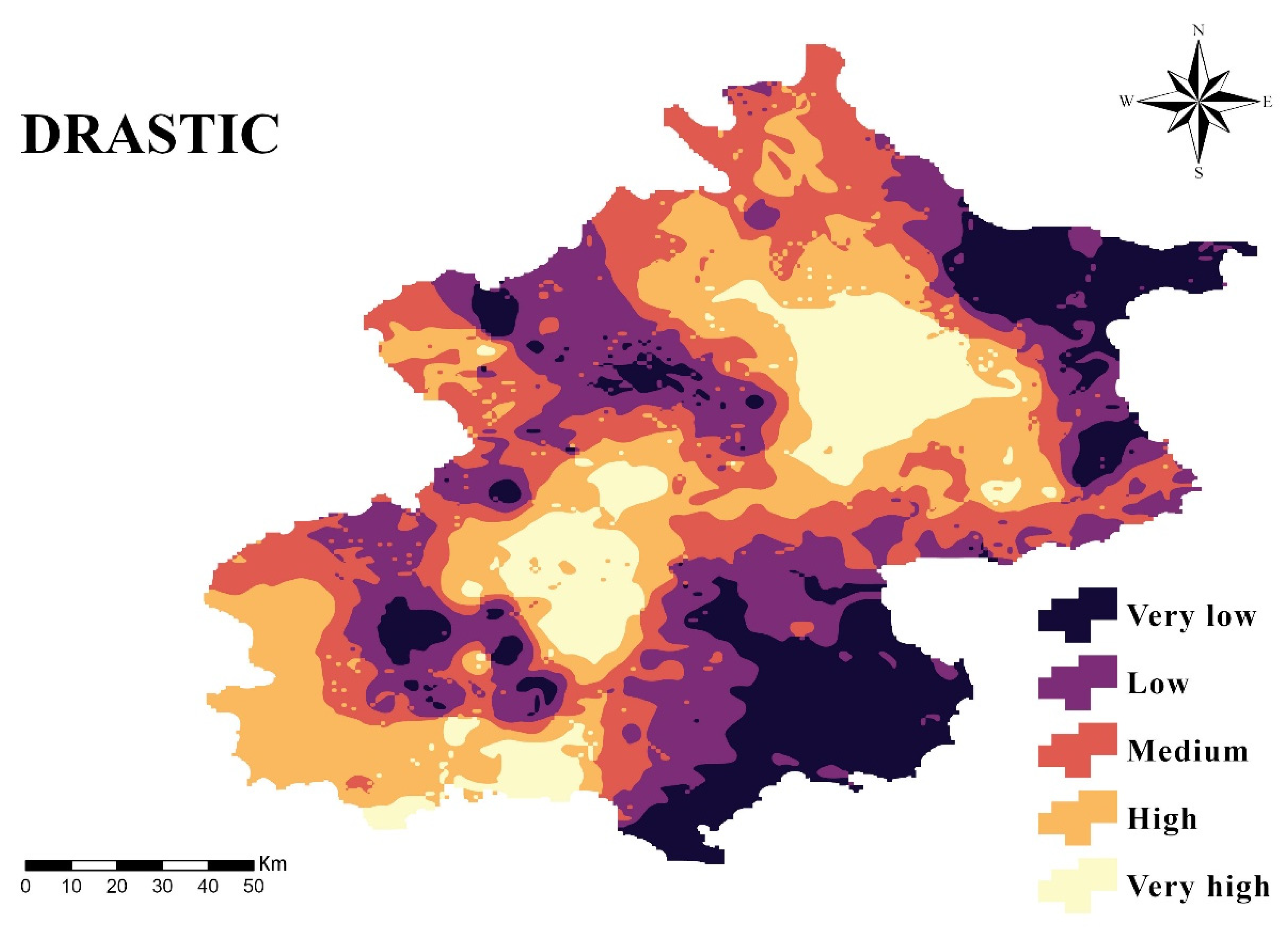 | Very Low | 16.93 | 16.73 | Thick aquitards, low recharge | Southeastern plain |