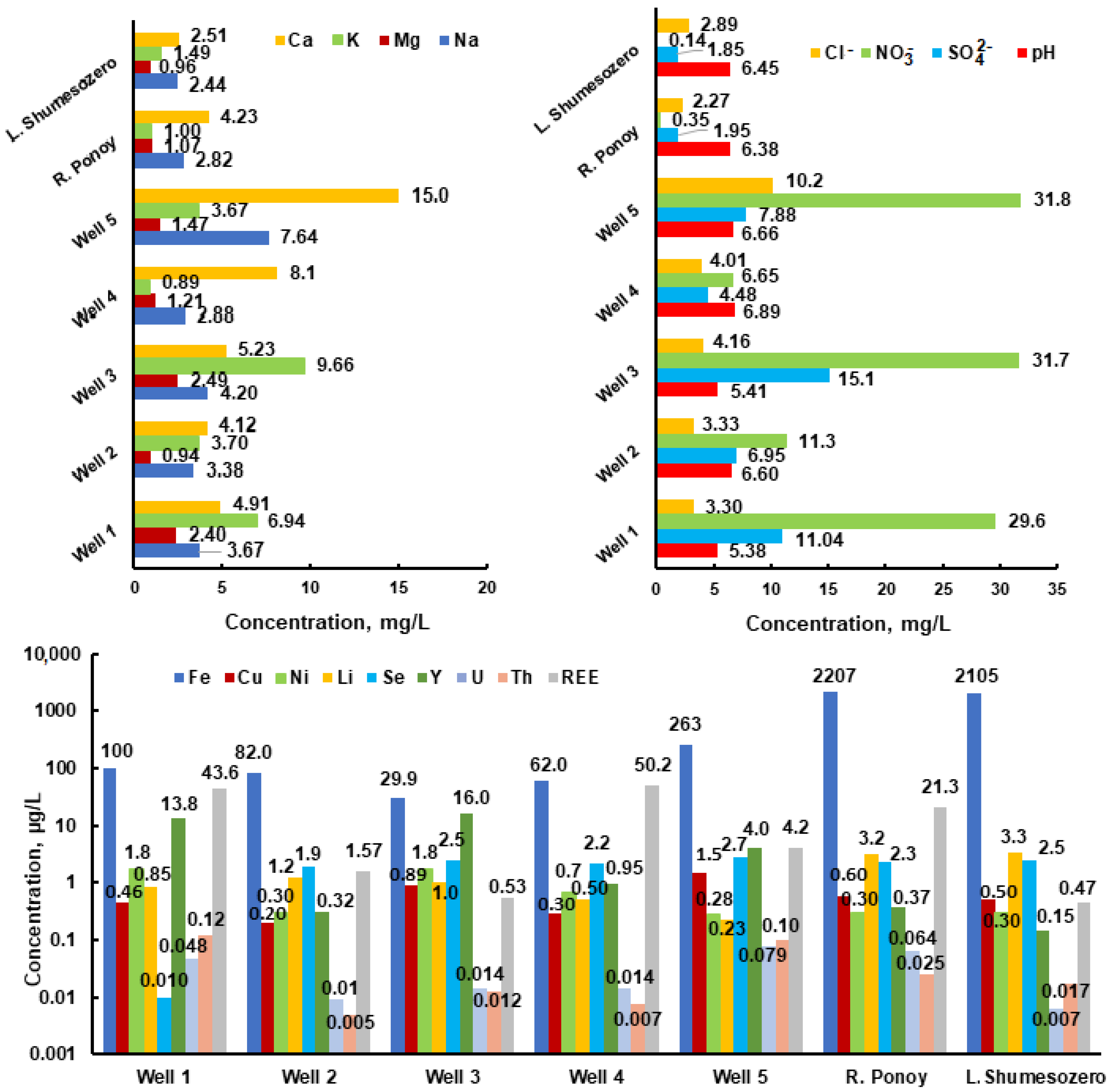 | Indicator | Ponoy River | Well (Figure 2, Point 5) | Indicator | Ponoy River | Well (Figure 2, Point 5) | ||||