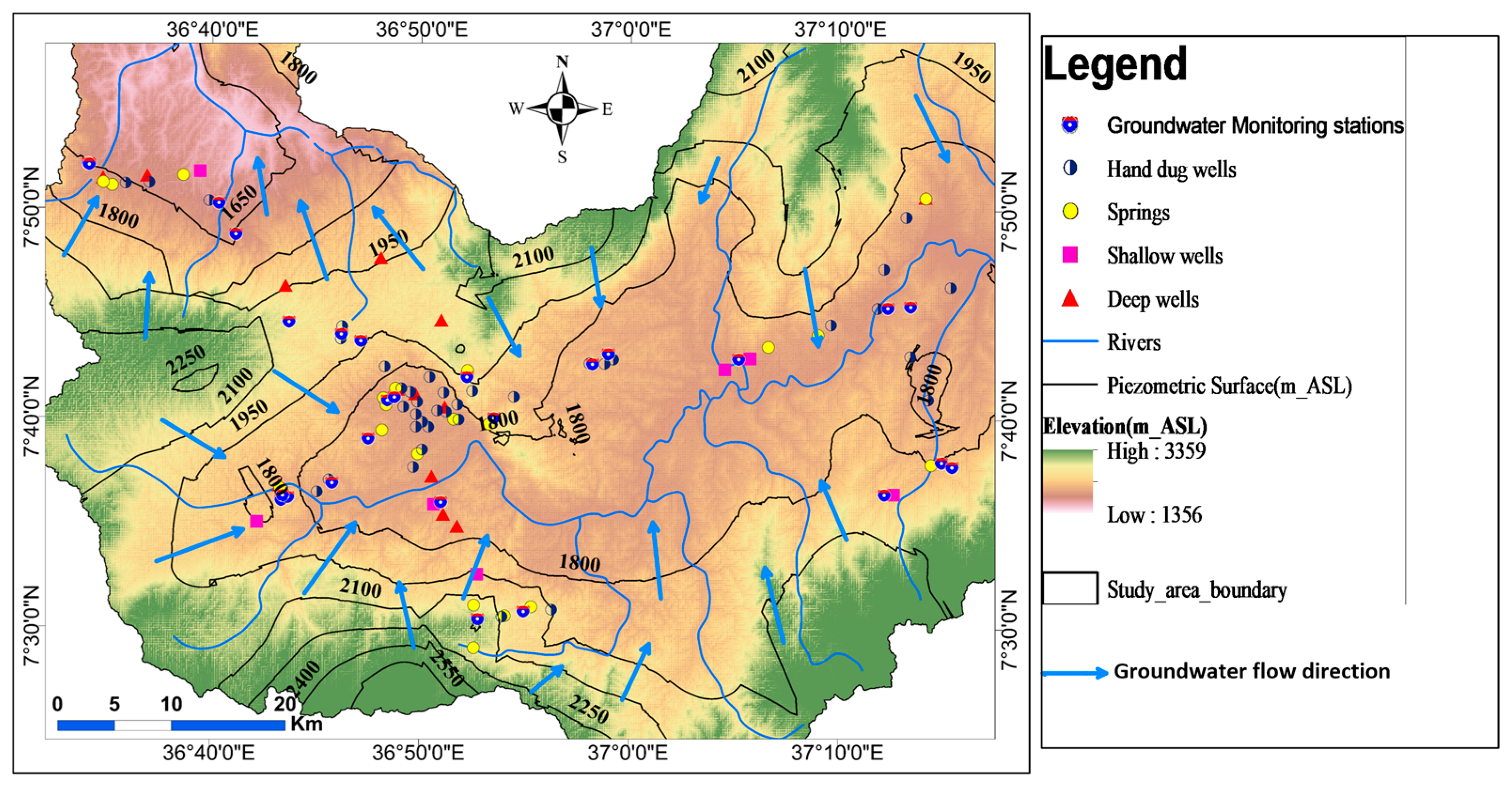 The overextraction of groundwater is an issue in Ethiopia; however, its management and sustainability are in question. The occurrence and dynamics of groundwater in Ethiopia depend on different controlling variables. Groundwater management and monitoring can be effectively achieved through hydrogeologic dynamic studies [