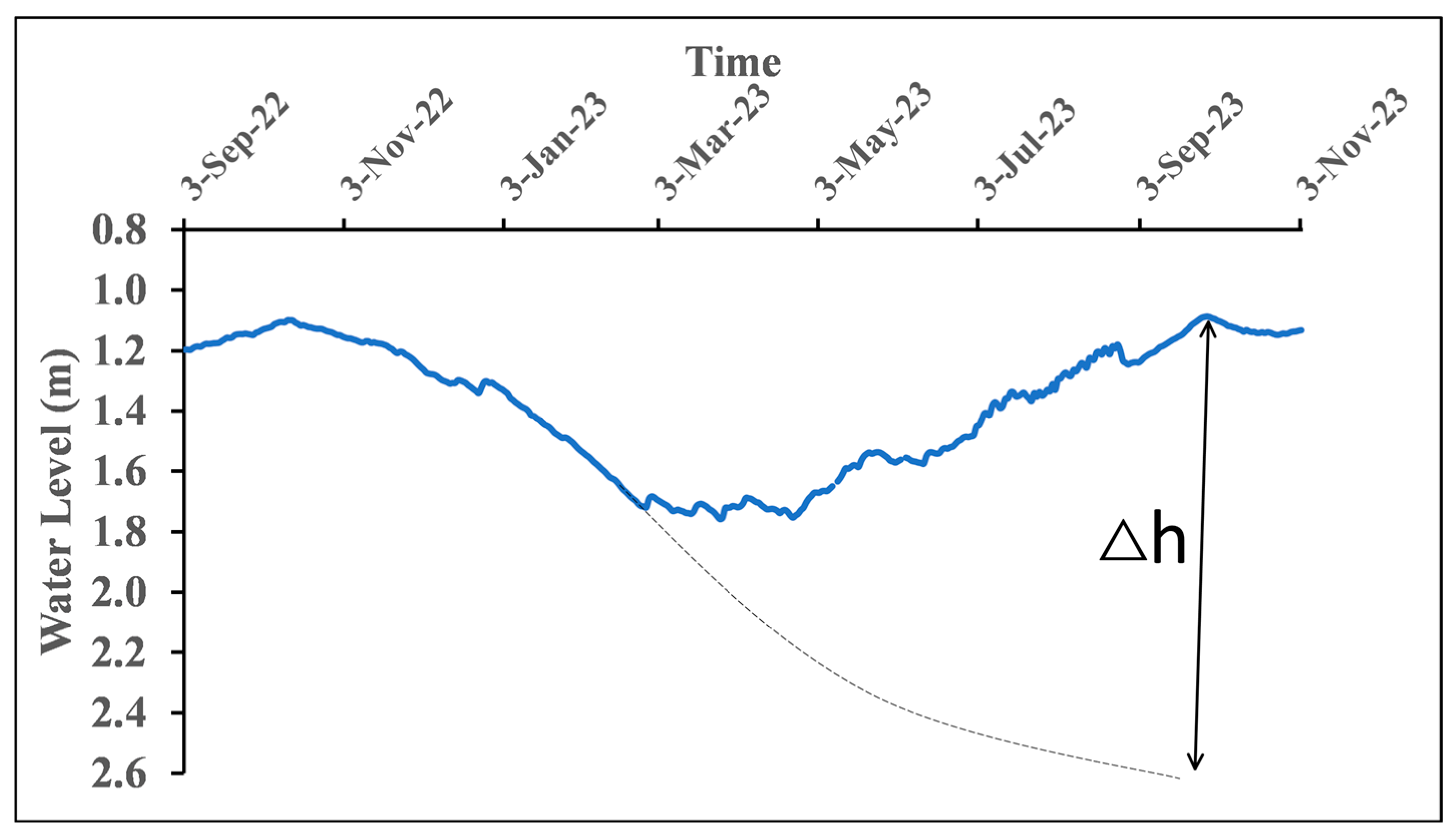 12]. Another limitation of the method is its inability to account for steady or continuous recharge. For instance, if the recharge rate equals the rate of groundwater drainage from the water table, no measurable fluctuation would occur, leading the WTF method to yield a recharge estimate of zero [