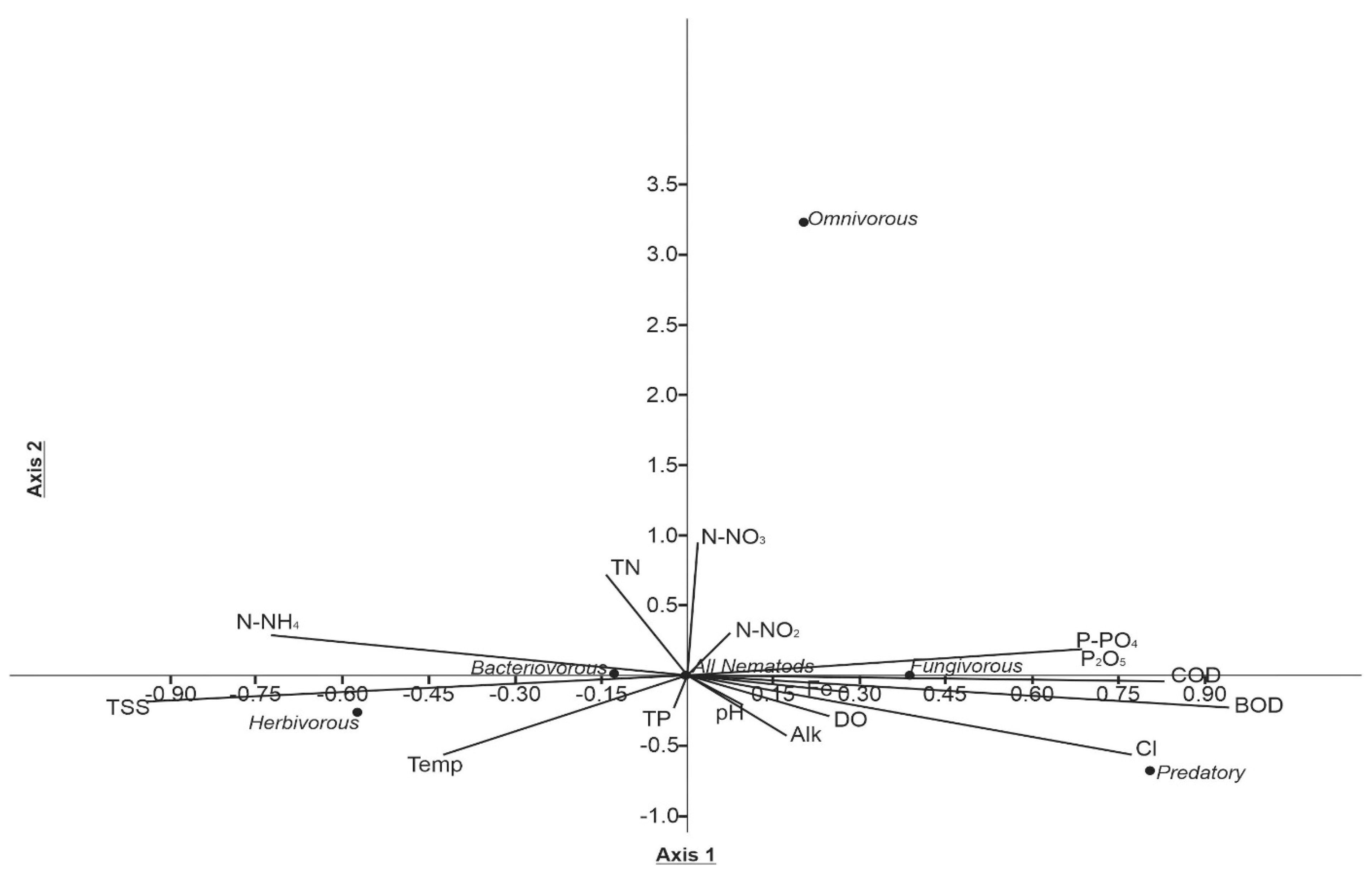 The Influence of Sewage on the Quantitative and Functional Diversity of Nematode Communities in Constructed Wetlands (VFCW): Analysis of Trophic Relationships Using Canonical Methods