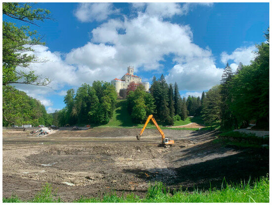 - Geokon-Zagreb, d.d. Geotechnical Study of a Survey of the Thickness and Composition of Sediment and Water Quality in Lake Trakošćan; Geokon-Zagreb d.d.: Zagreb, Croatia, 2019. [Google Scholar]
