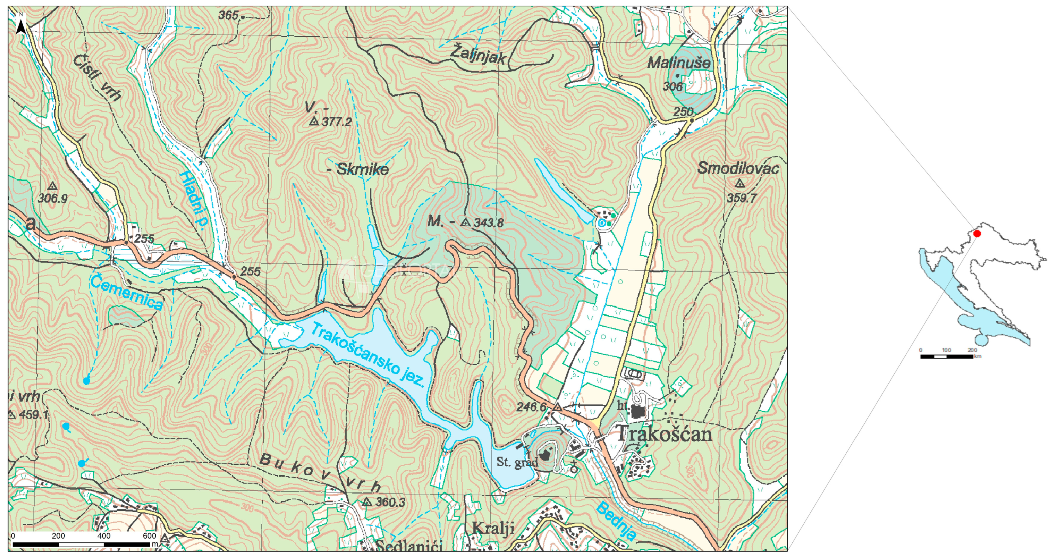 - Tanocki, Z.; Crljenko, I. Jezera Hrvatske; Školska knjiga: Zagreb, Hrvatska, 2011. [Google Scholar]