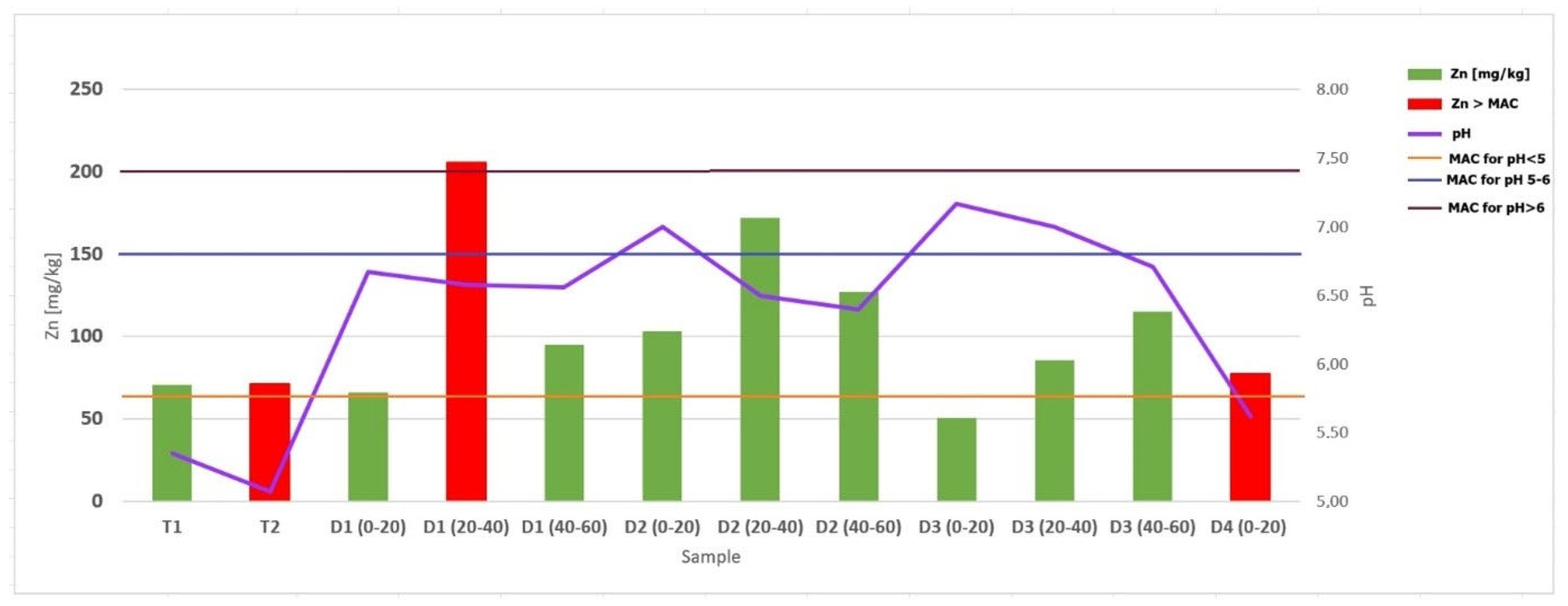 | Zn | 105.754 | 28–477 mg/kg | 73 mg/kg |