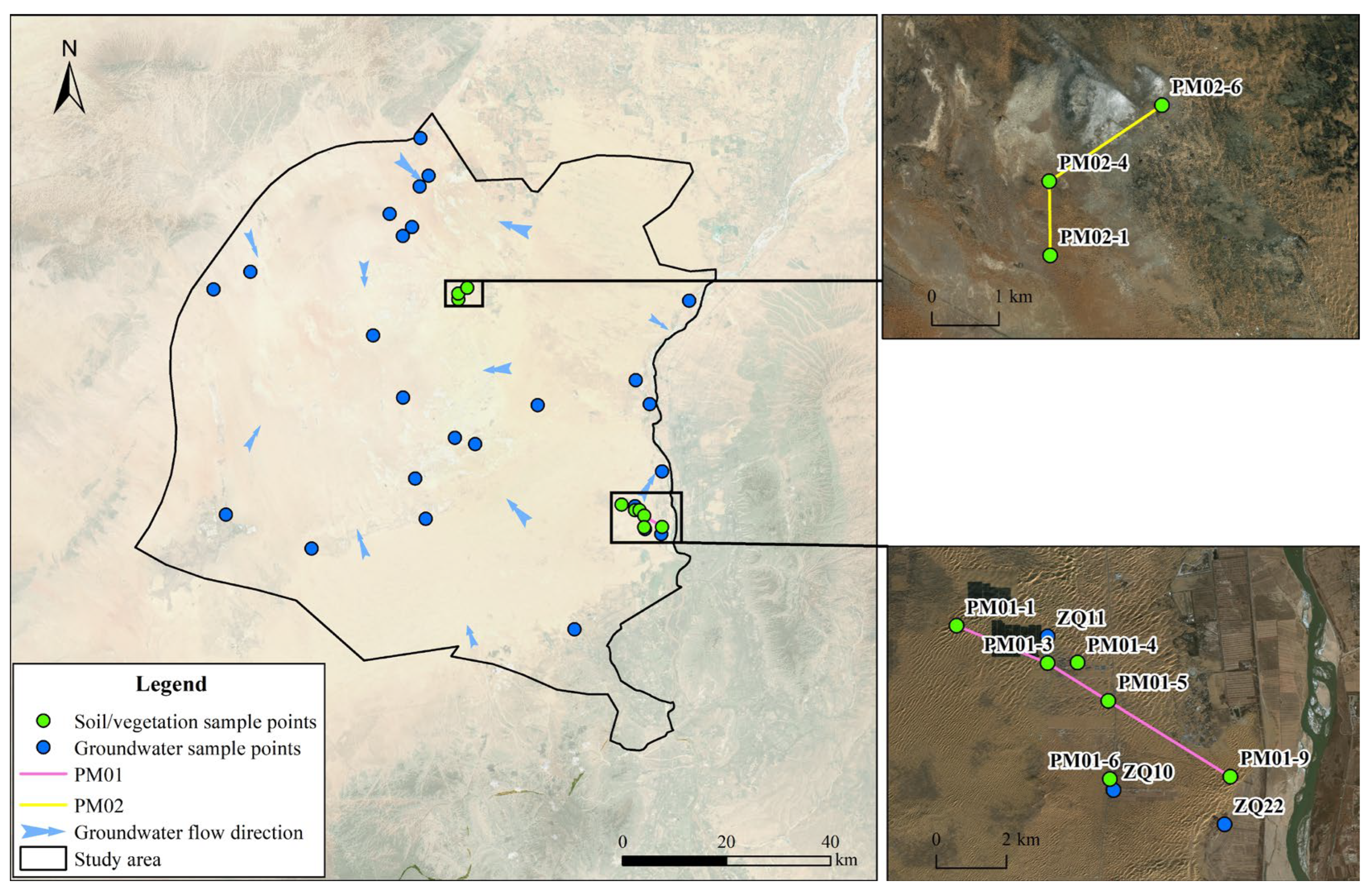 - Lu, T.; Wu, J.; Lu, Y.; Zhou, W.; Lu, Y. Effects of Groundwater Depth on Vegetation Coverage in the Ulan Buh Desert in a Recent 20-Year Period. Water 2023, 15, 3000. [Google Scholar] [CrossRef]